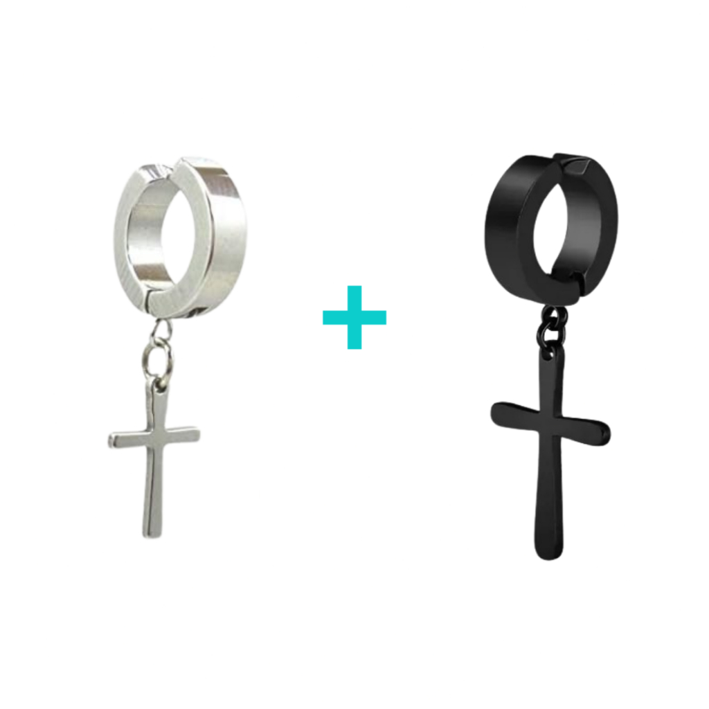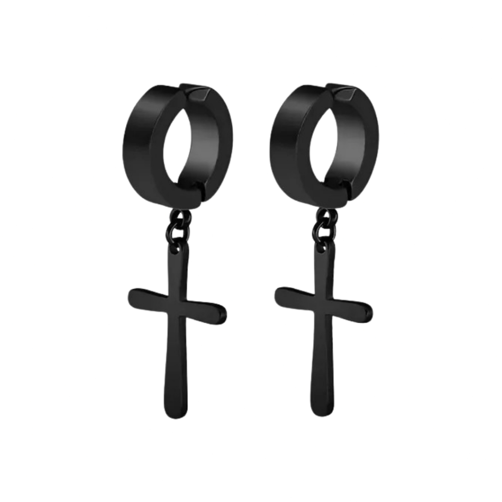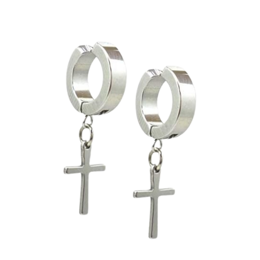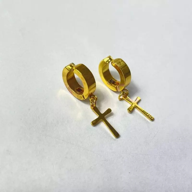 Brinco de Pressão Argola Aço Inoxidável Dourado Preto Prata com Cruz Masculino