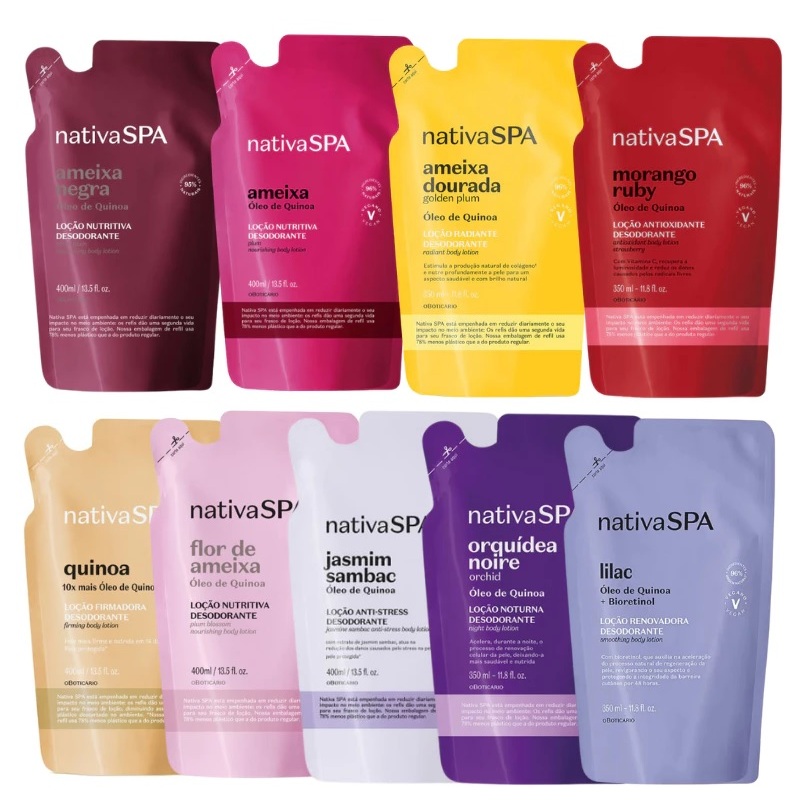 Refil Hidratante Nativa SPA Ameixa, Ameixa Negra, Ameixa Dourada, Lilac 400ml
