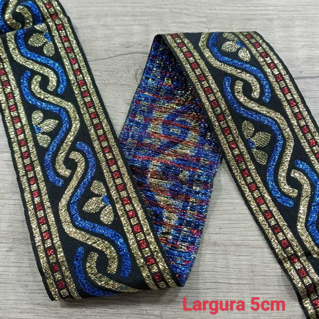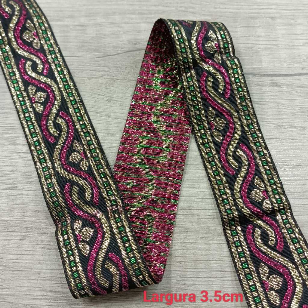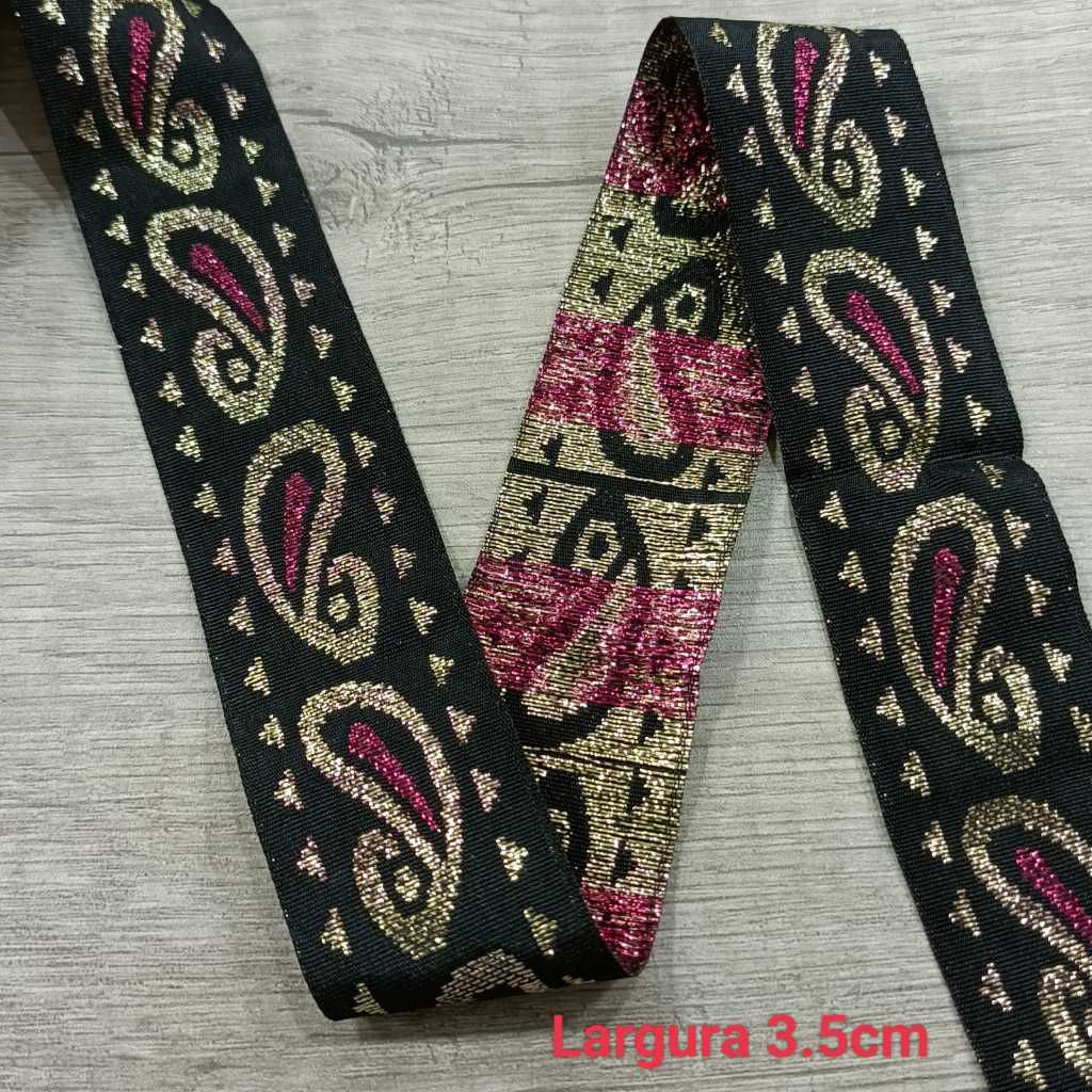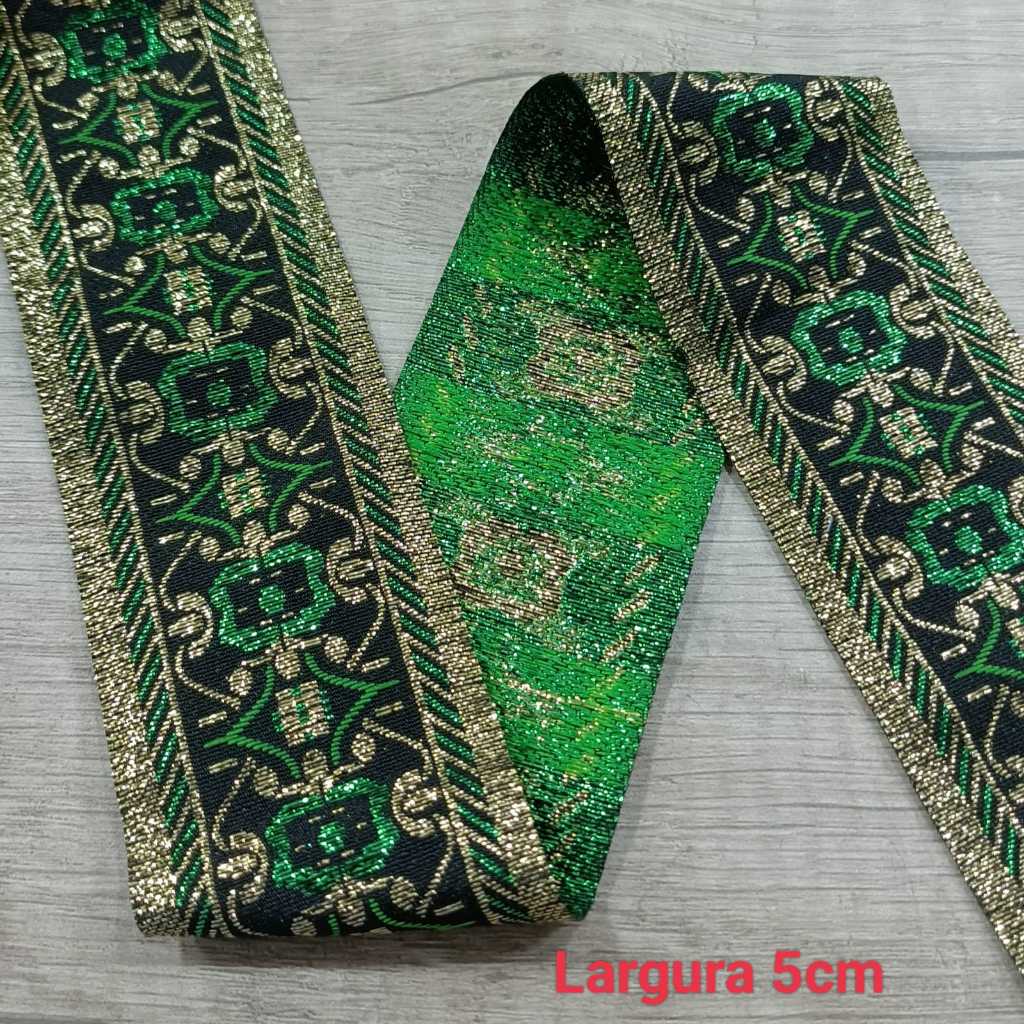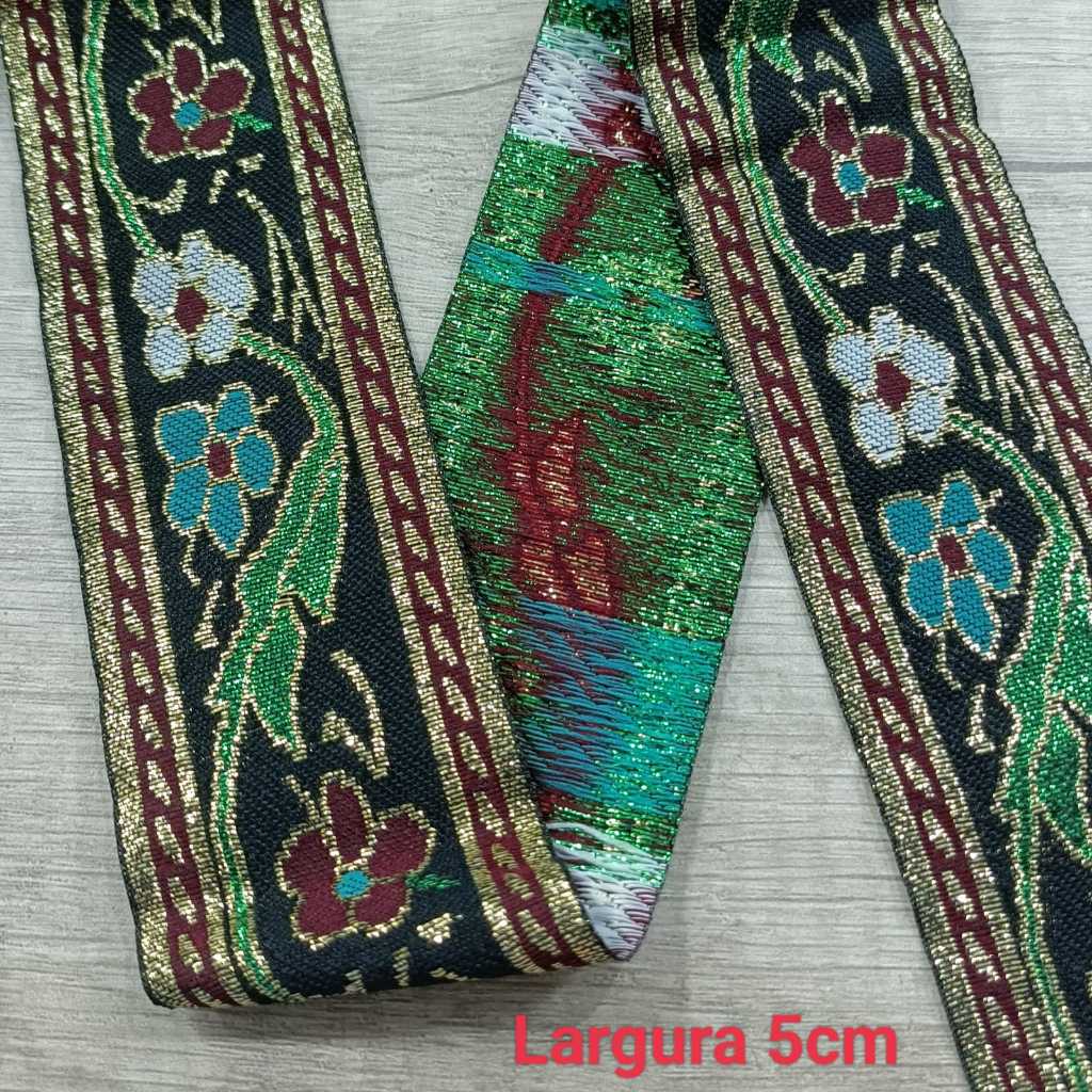 1 Metro Fita Grega Galão Ponto Russo Dourada Floral
