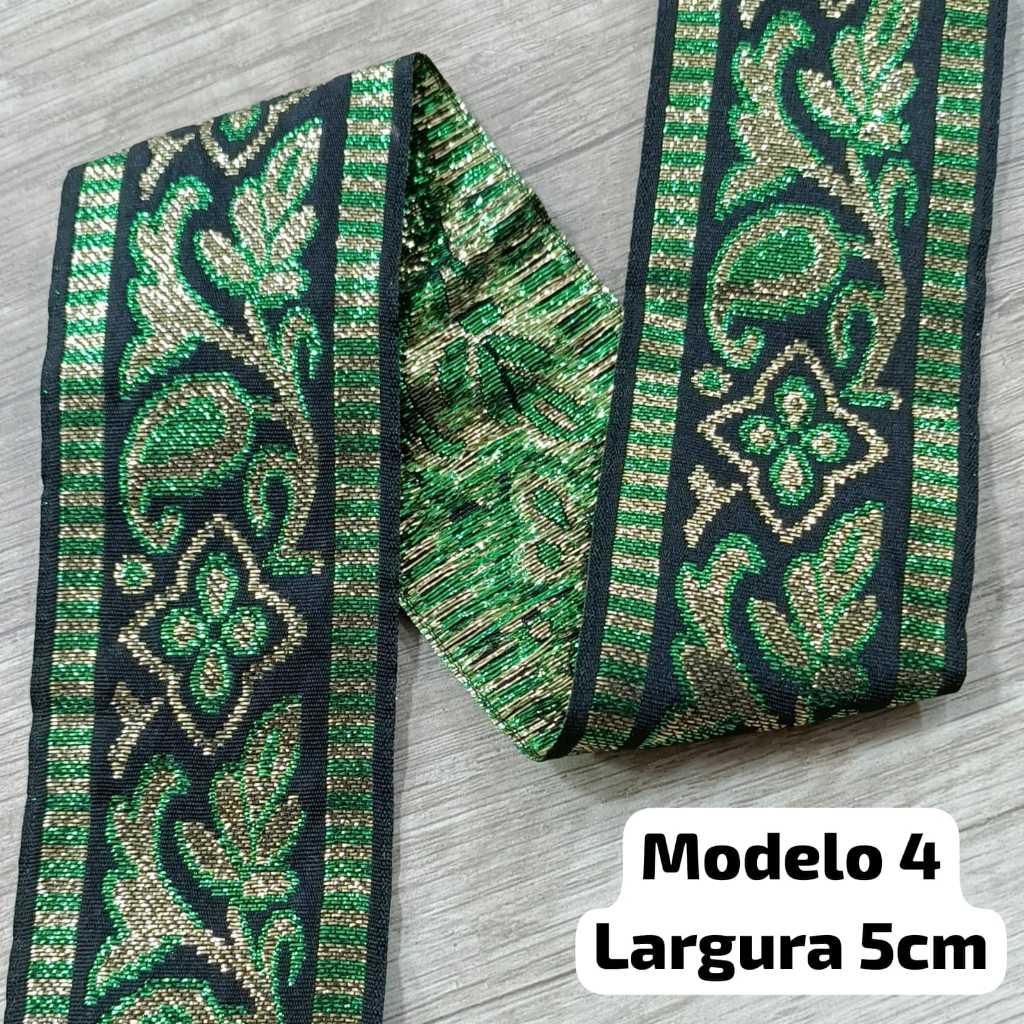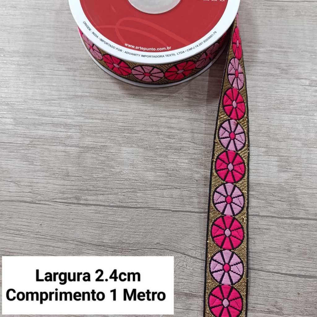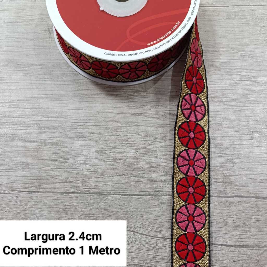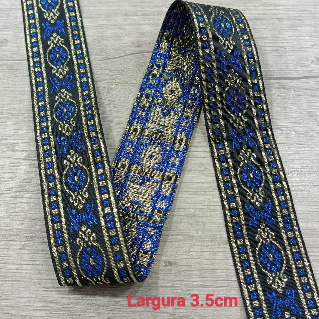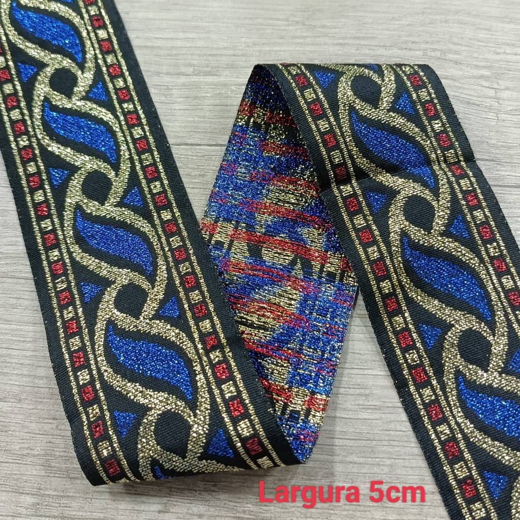 1 Metro Fita Grega Galão Ponto Russo Dourada Floral
