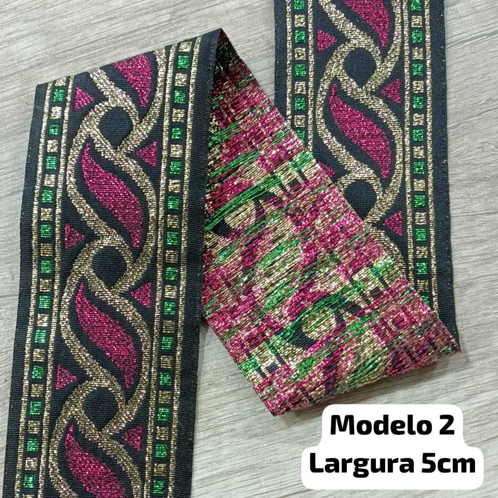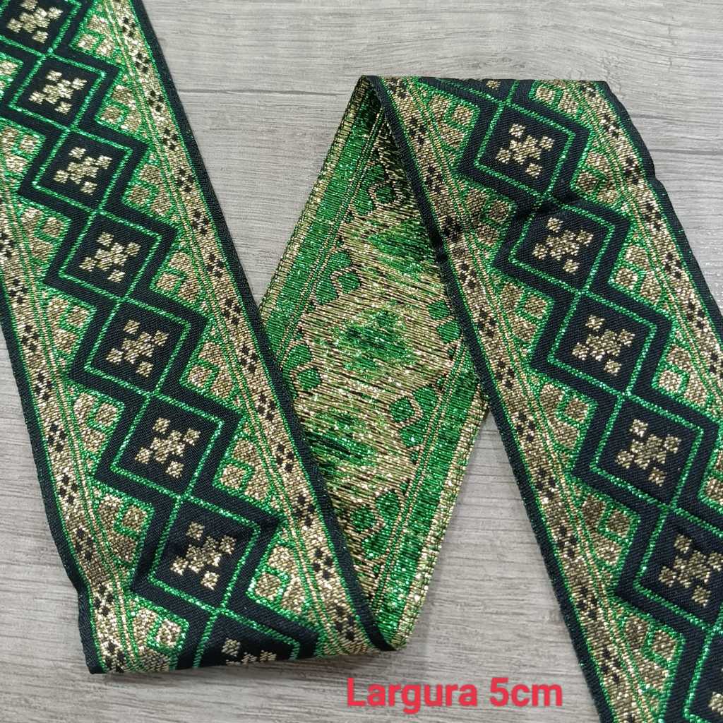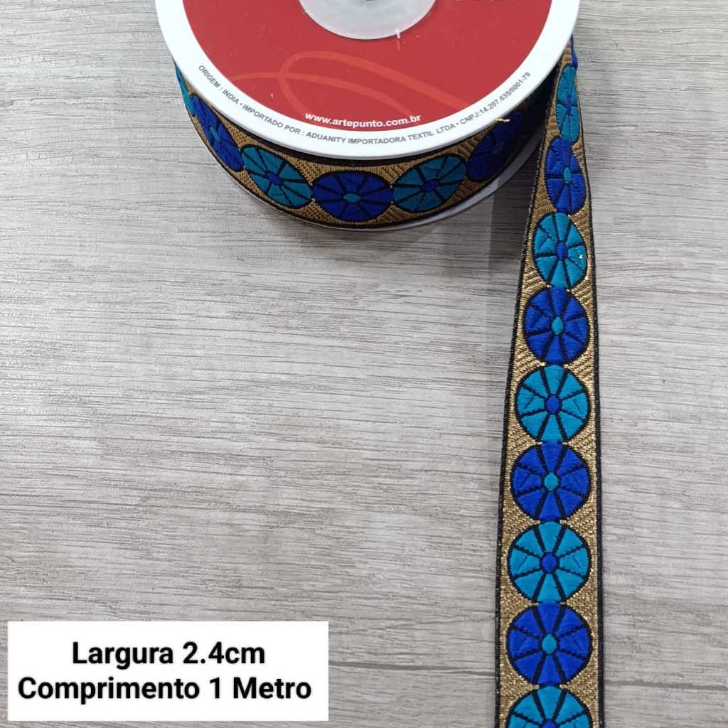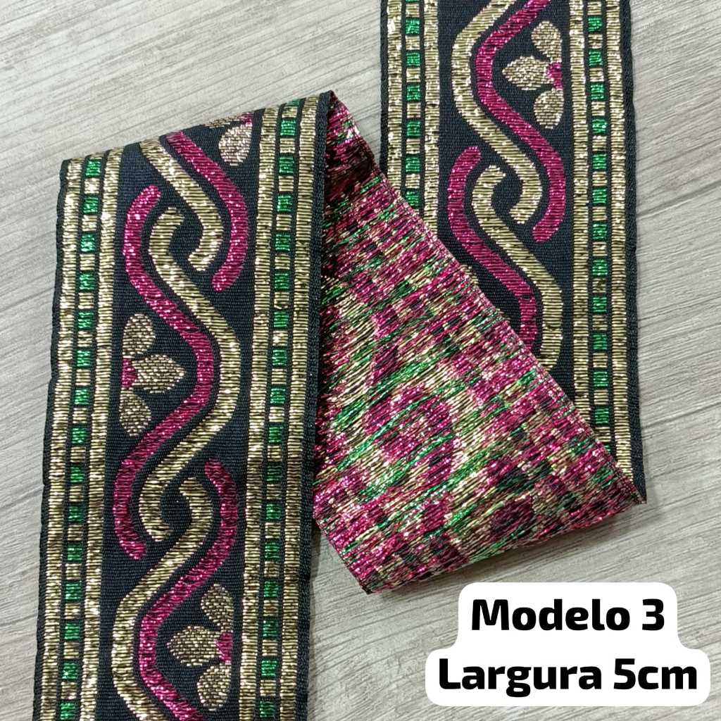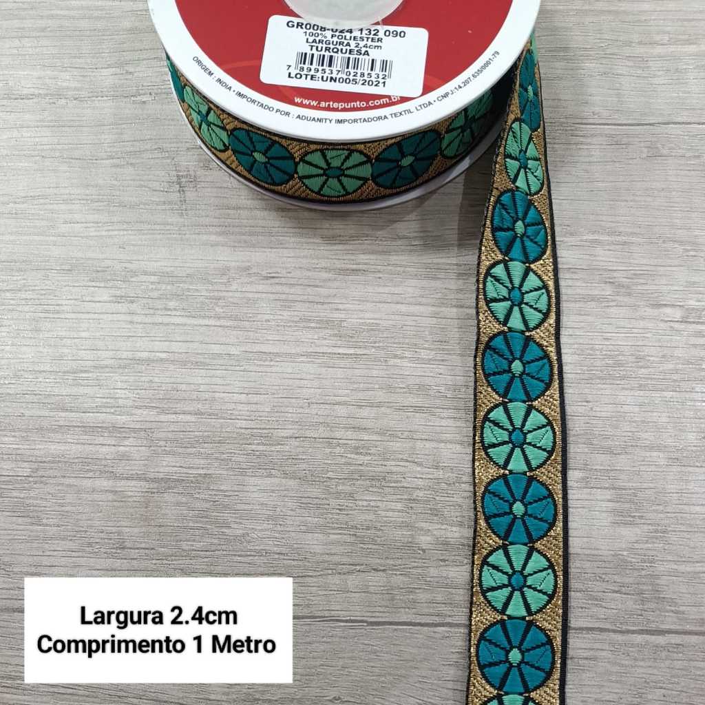 1 Metro Fita Grega Galão Ponto Russo Dourada Floral