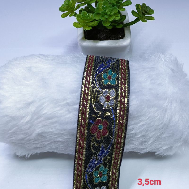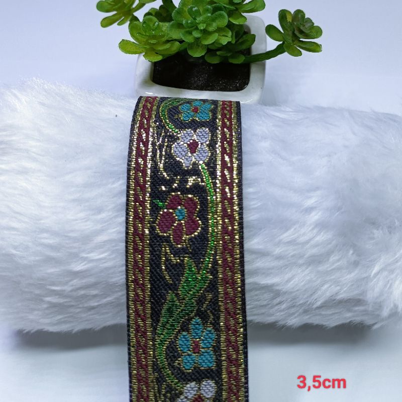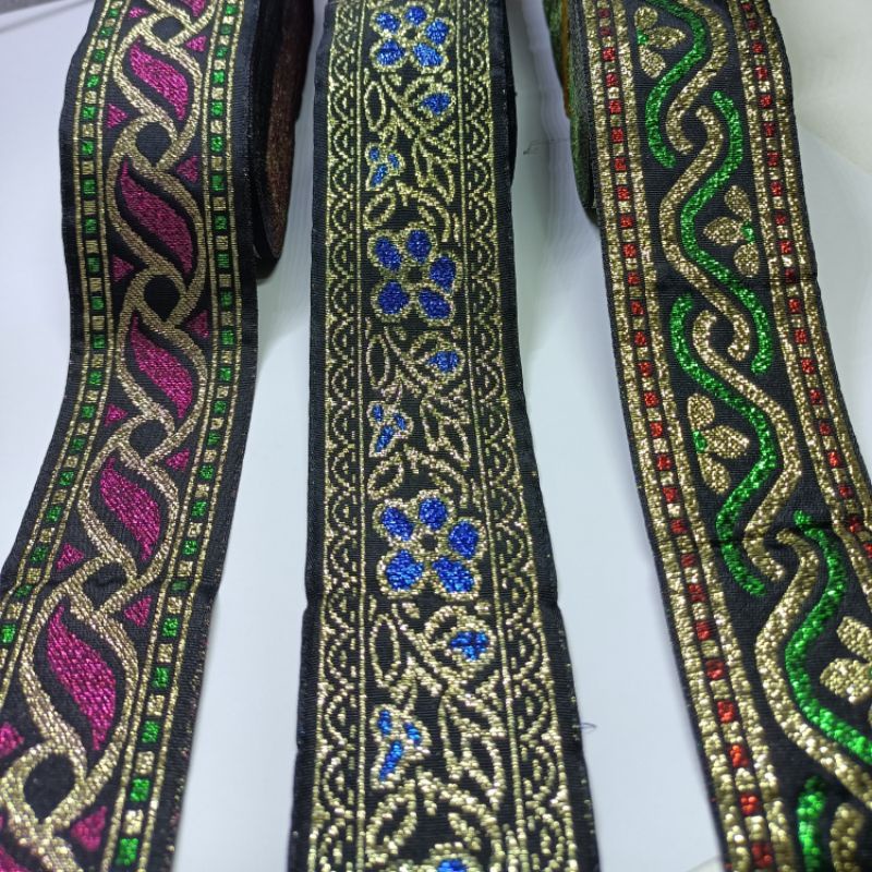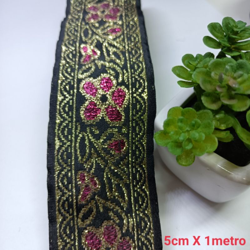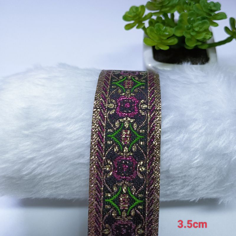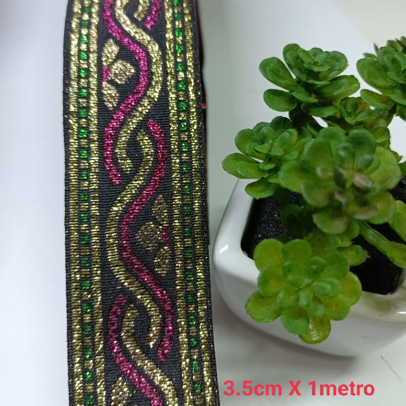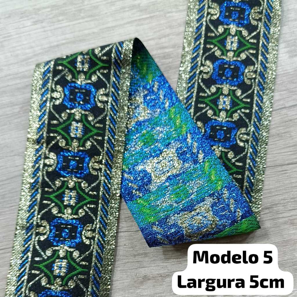 1 Metro Fita Grega Galão Ponto Russo Dourada Floral