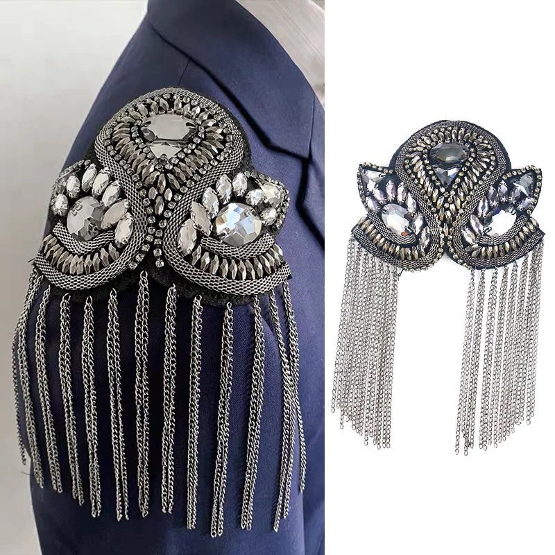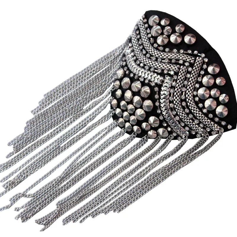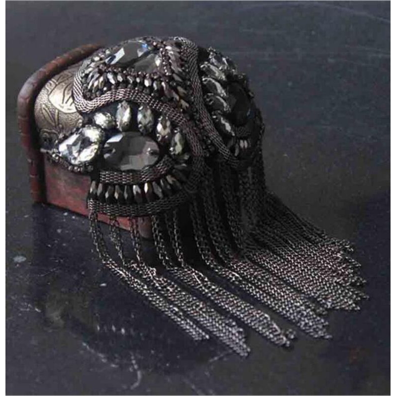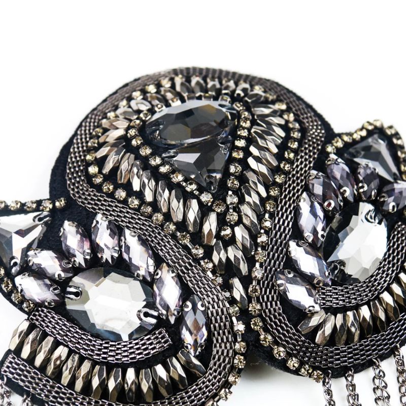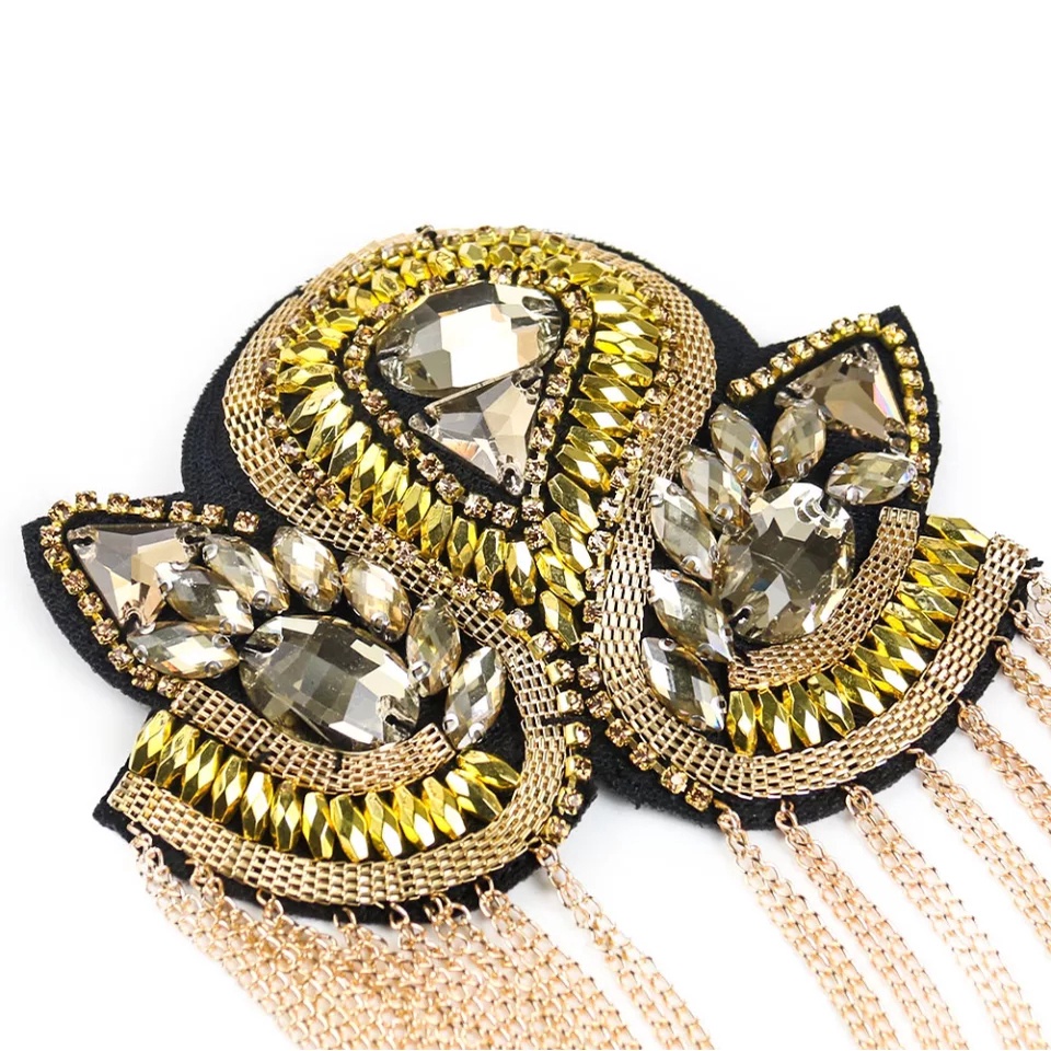Par Ombreira de luxo Bordado com Correntes e Chaton Grafite Dourado Carnaval