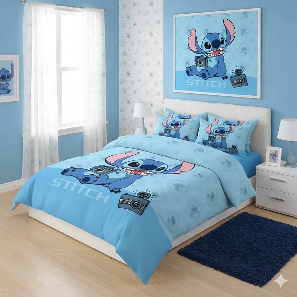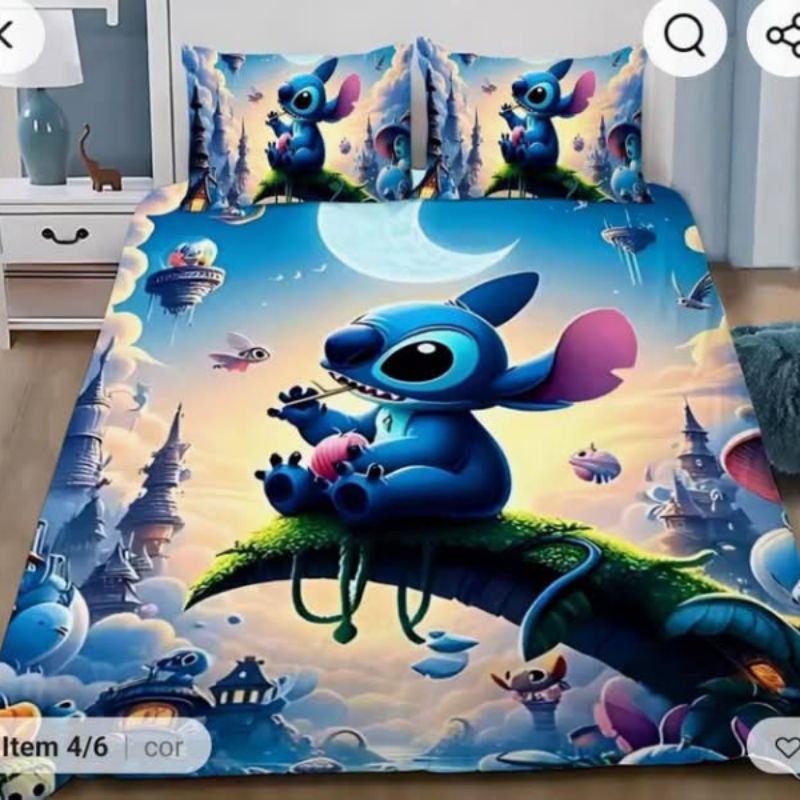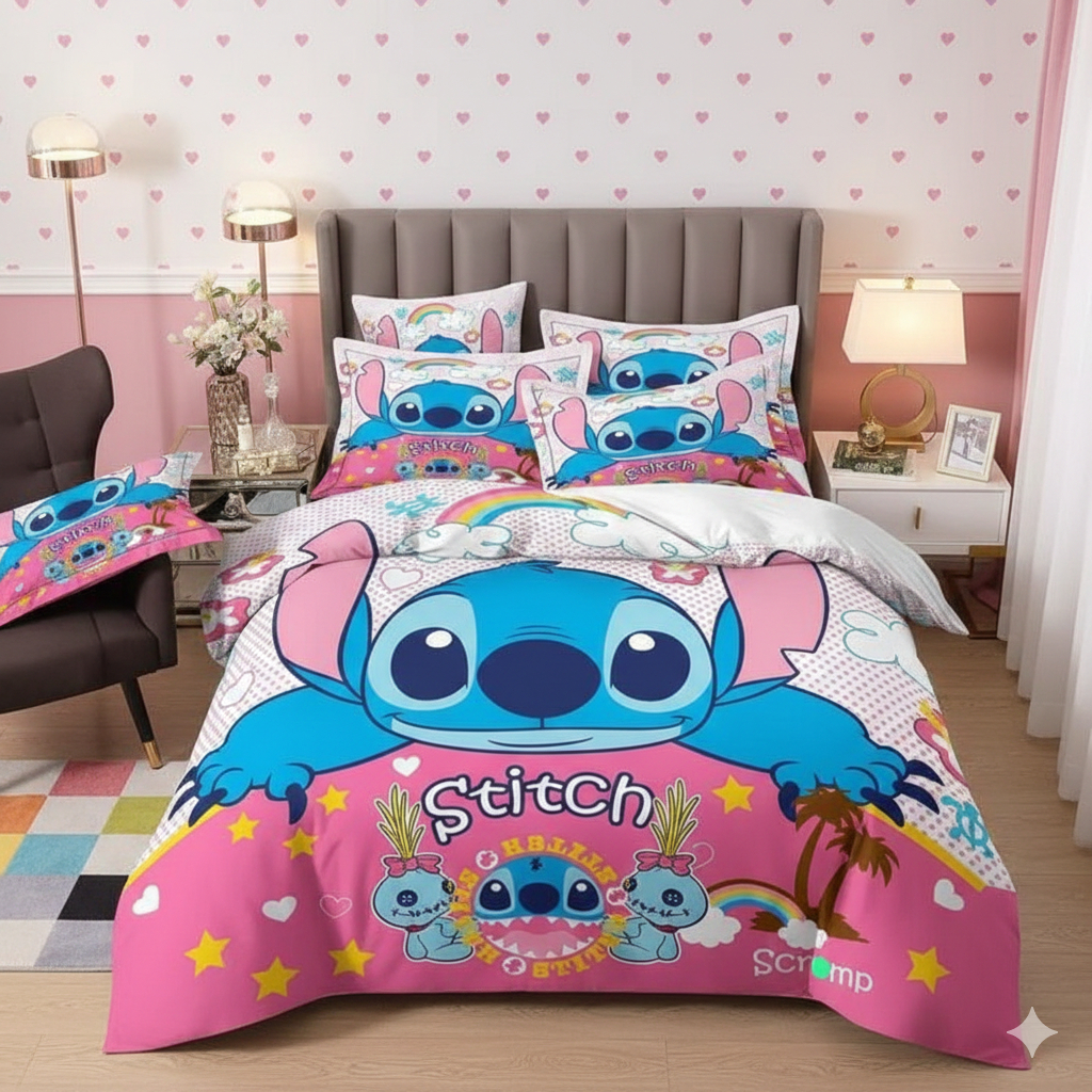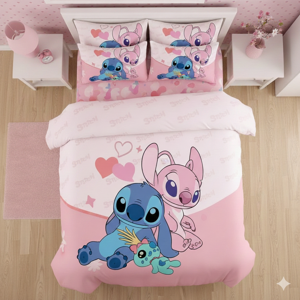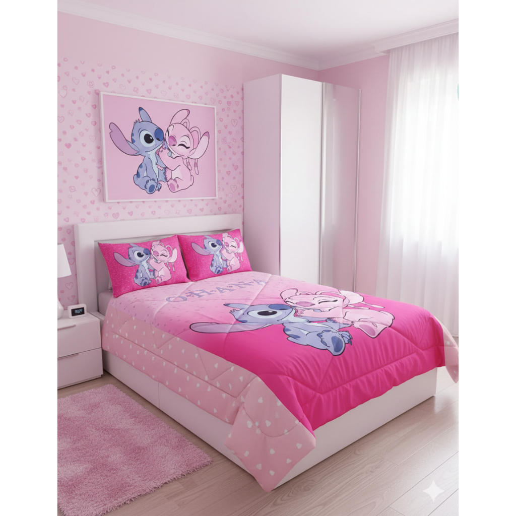 Edredom Queen 5 peças Tendencia Stitch Dupla Face Antialergico
