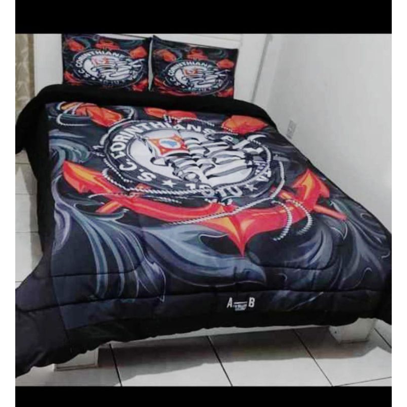 Edredom Time Futebol Timão Campeão Casal Queen 5 peças Dupla Face