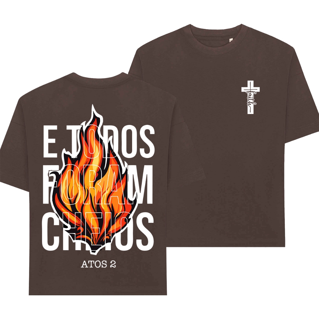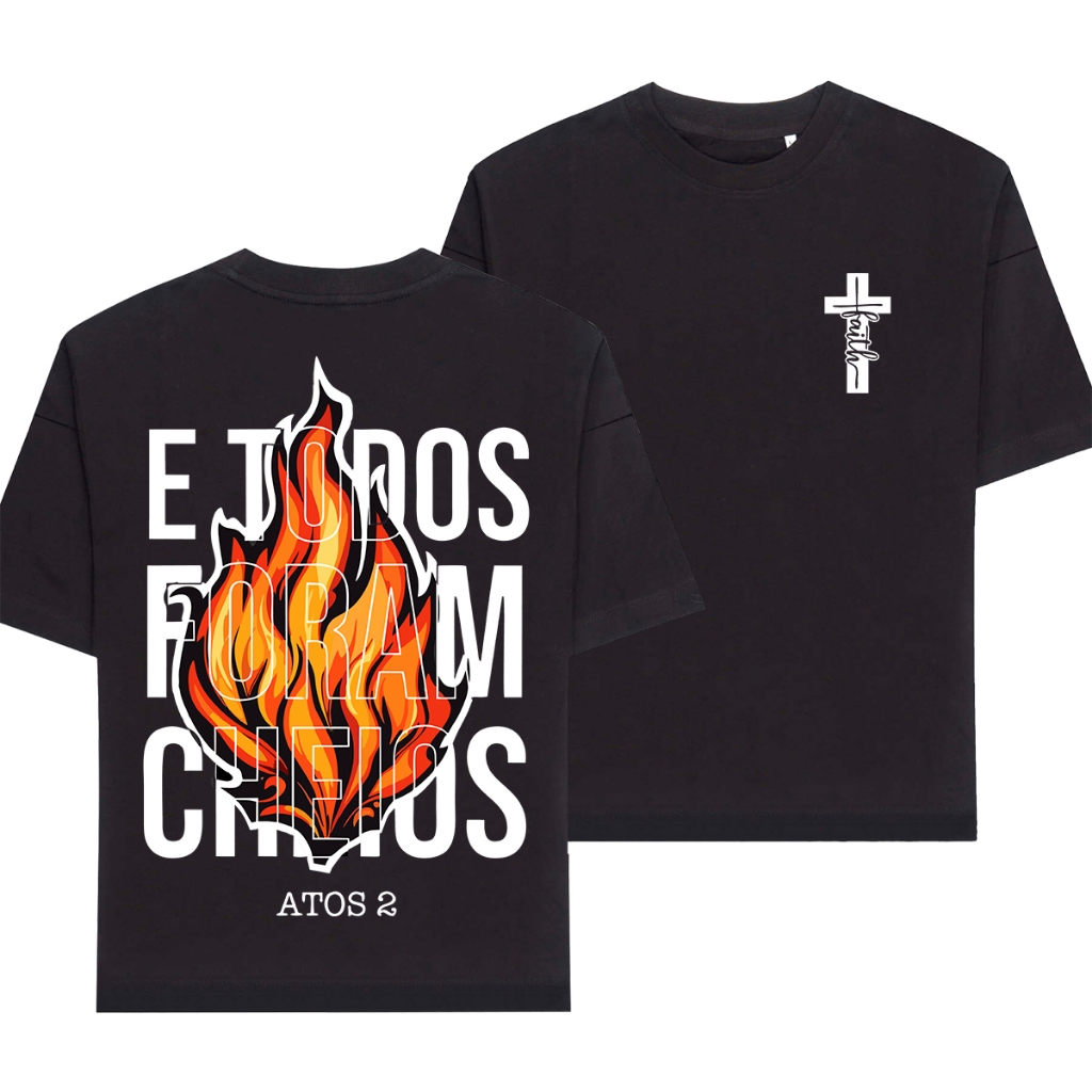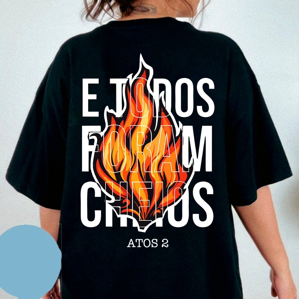 Camiseta Feminina Oversized ou T-shirt Gospel Frase E todos forem cheios Religiosa Cristã Premium
