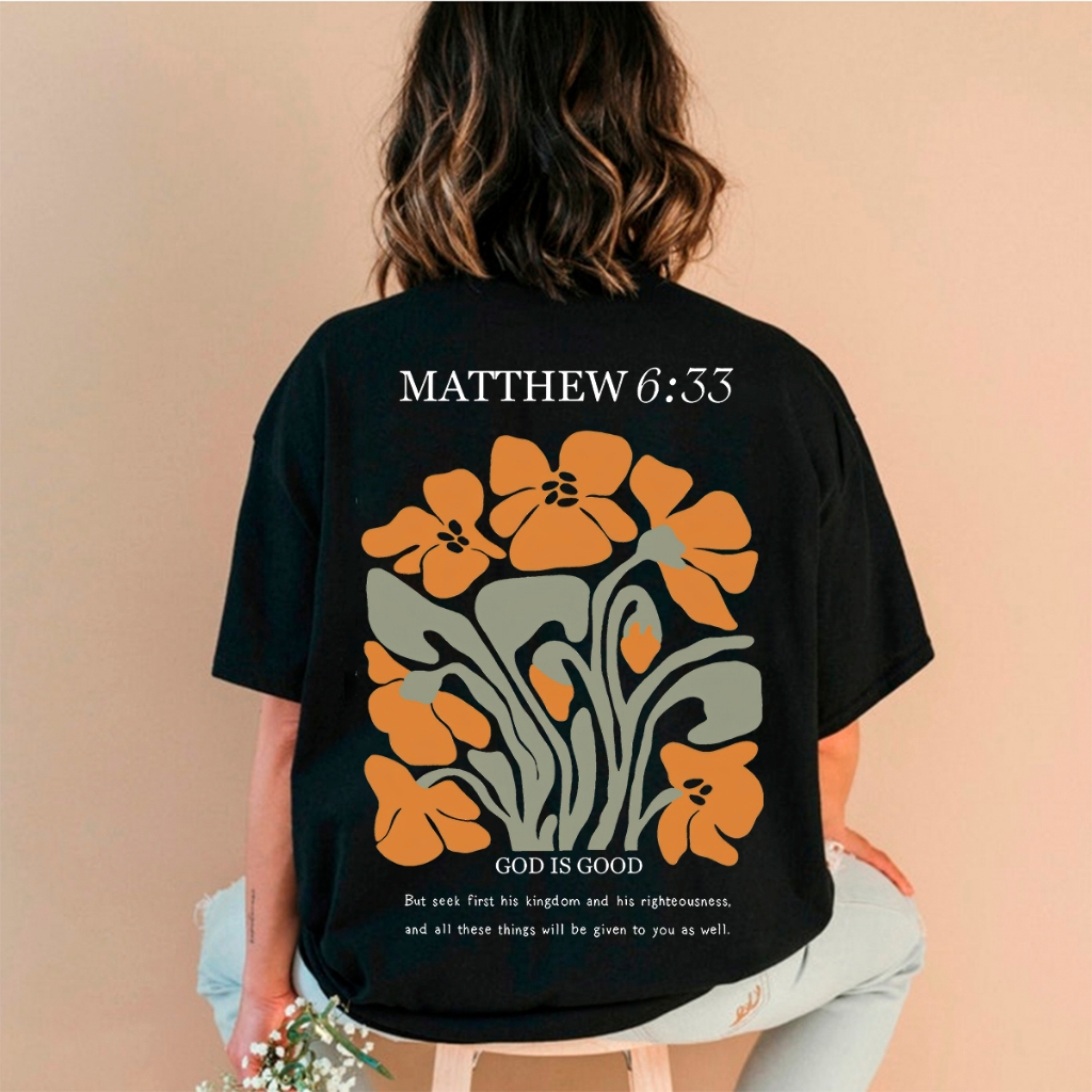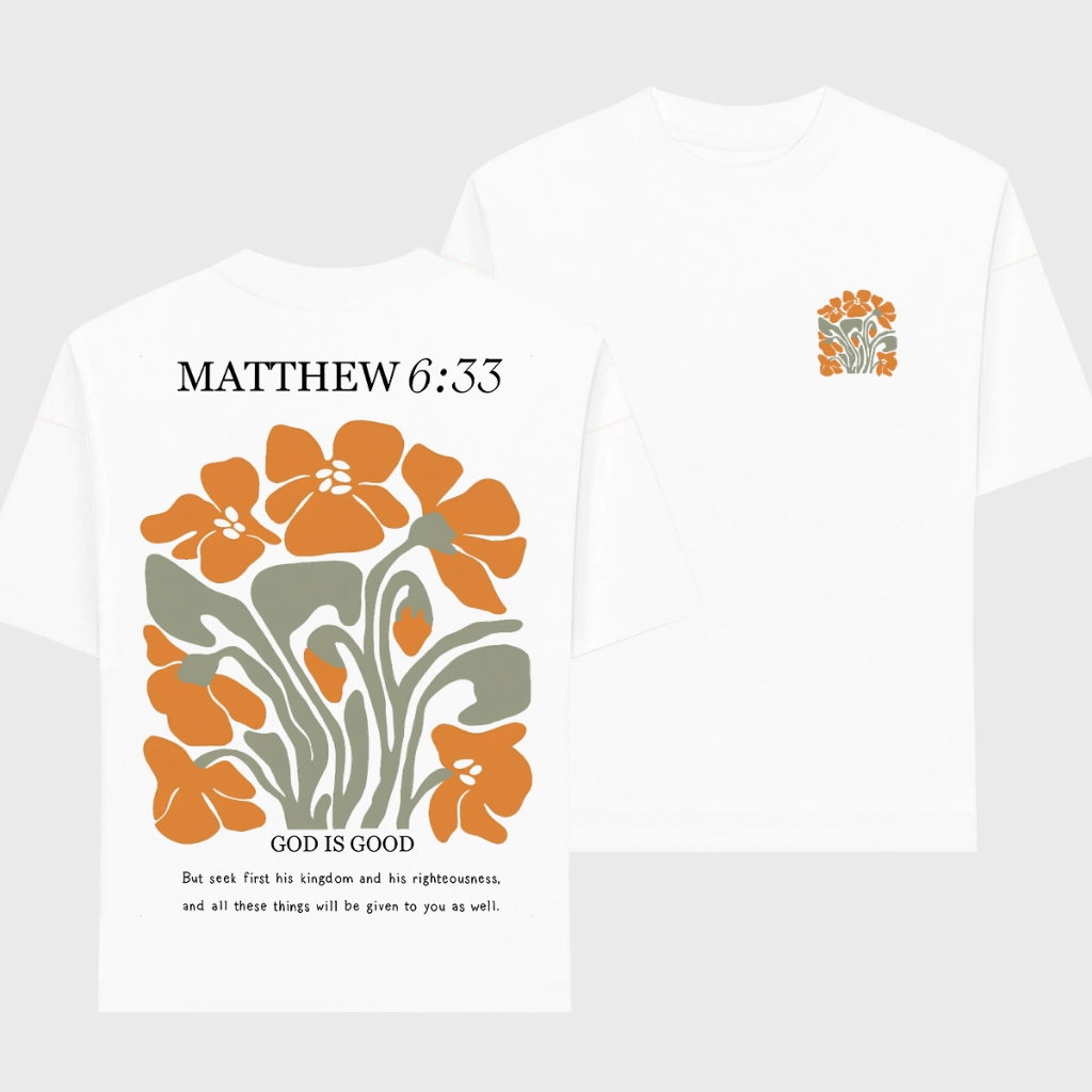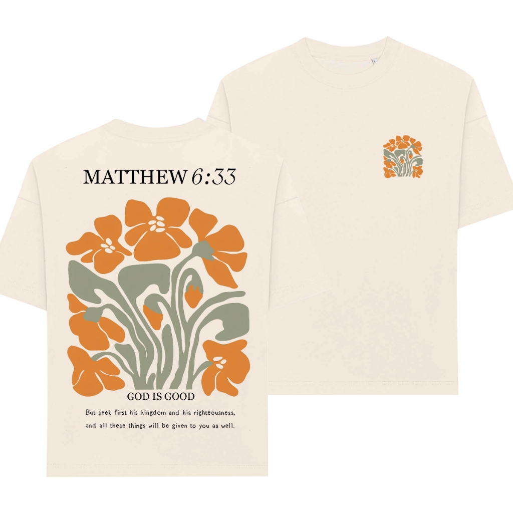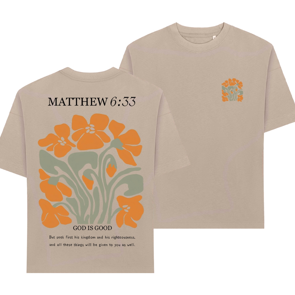 Camiseta Feminina Oversized ou T-shirt Estampa Frase Versículo Gospel Cristã Fé Religiosa Bege