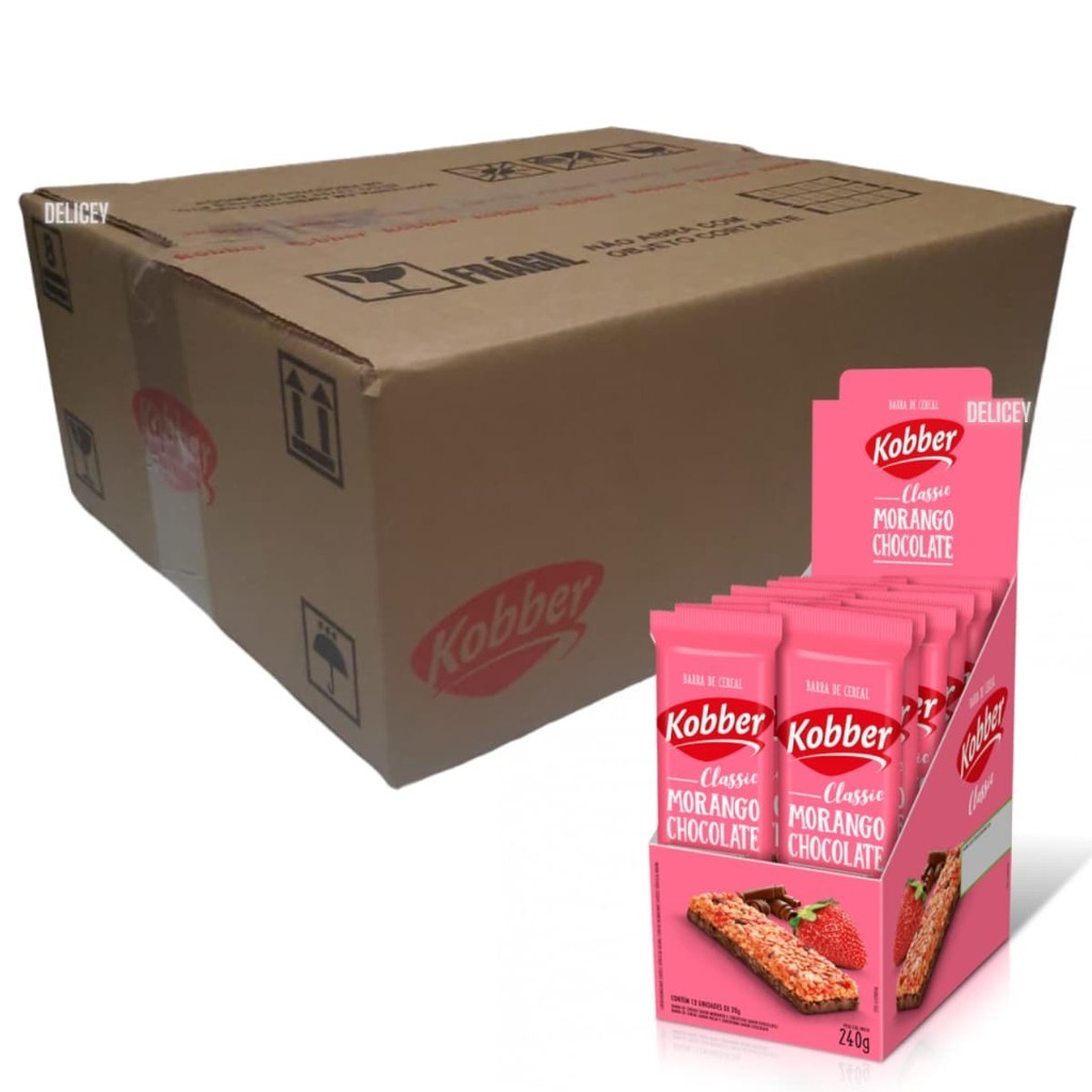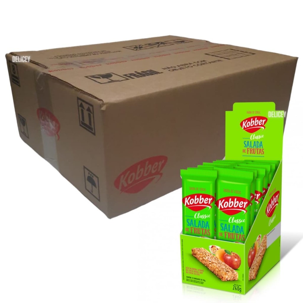 Caixa Fechada C/8 Display 240g 96un Barra Cereal Kobber Classic Cereais - Morango, Castanha, Frutas