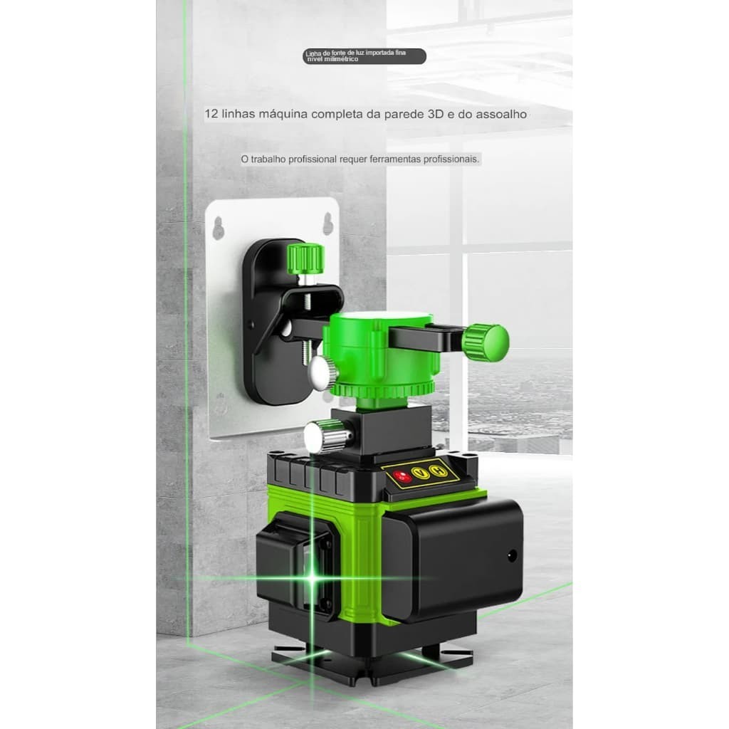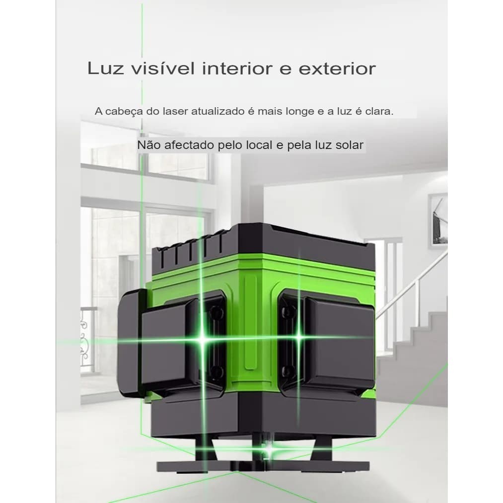 Nível A Laser Verde 12 Linhas 3d Nivelador Mini Tripé 360°