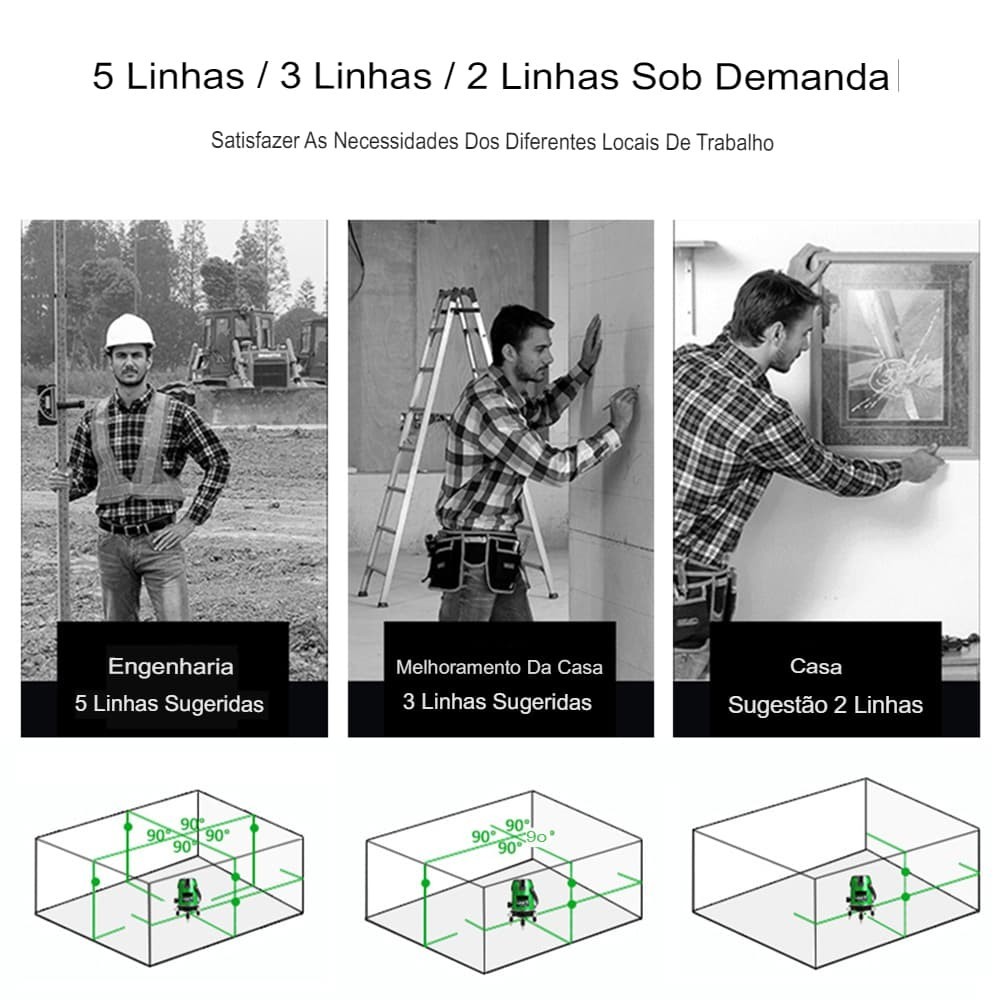 Nível A Laser Verde 2 Linhas Nivelador Profissional 360°