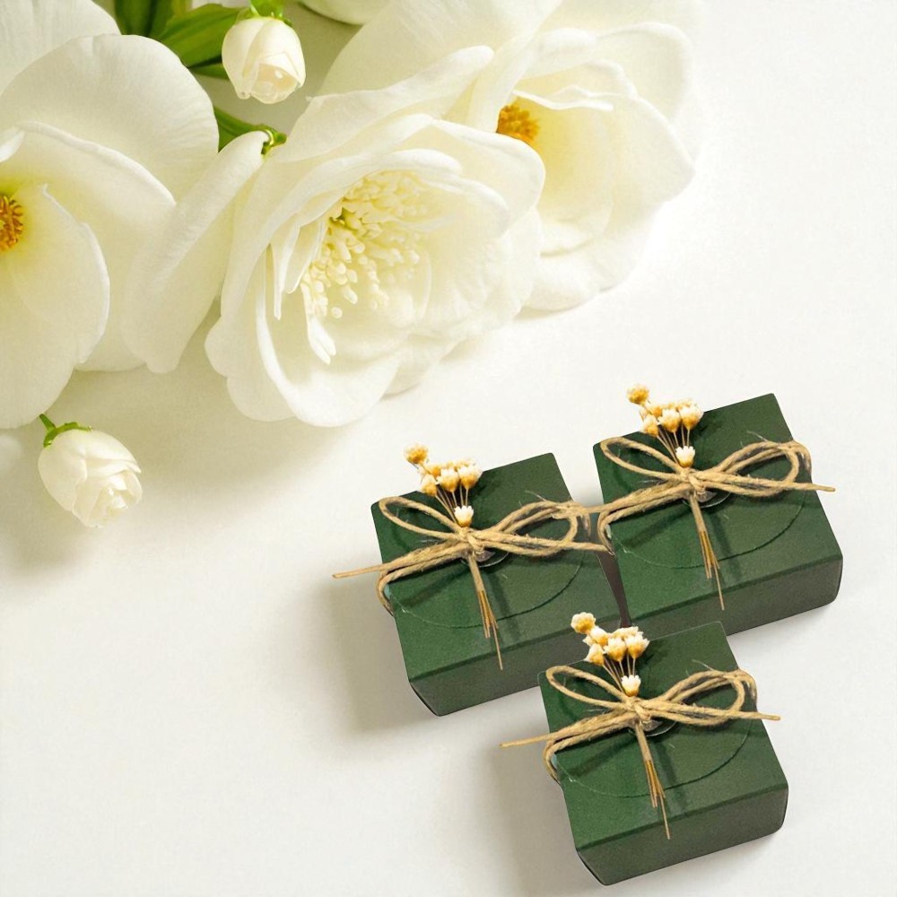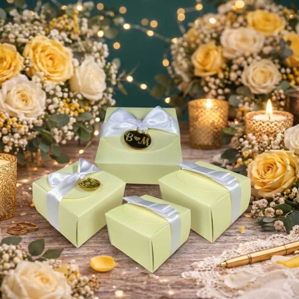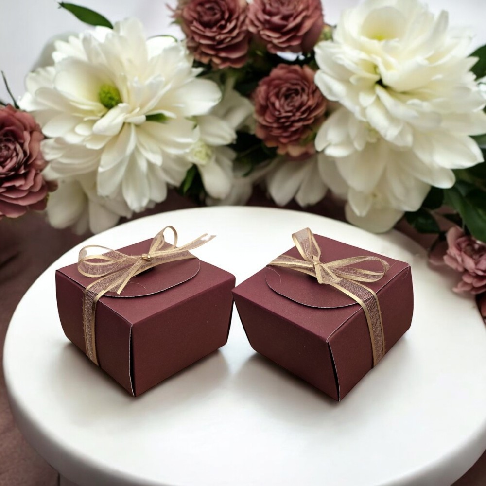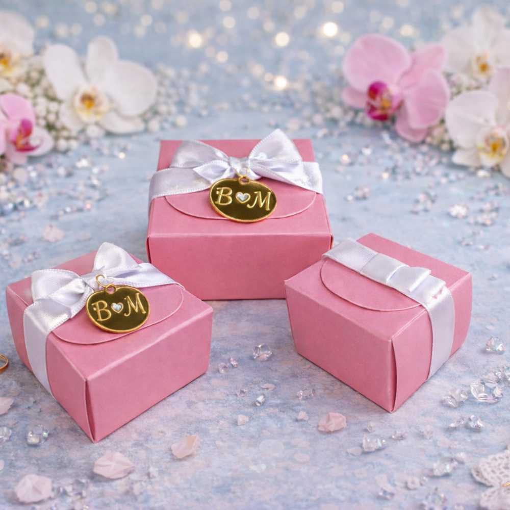 100 Caixinha Bem Casado Lembrancinha 6x6x4 Branco/ Kraft, Verde, Lilás, Rose, Serenity e Terracota