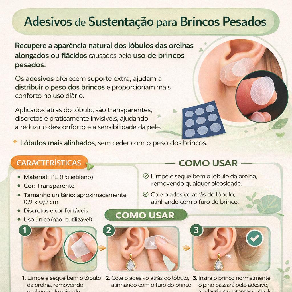 60 Adesivo Sustentação Orelha Rasgada Alongada Lóbulo Machucado p Brincos Pesados Prático Invisível