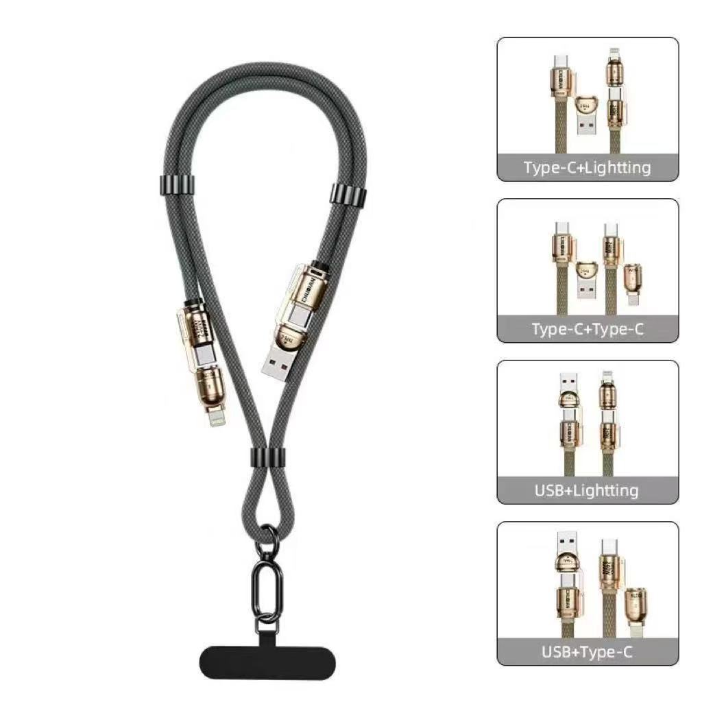 Cordão do Telemóvel Cabo de Dados 1500MM 240W 4em1 Ajustável Portátil Eletromex Original