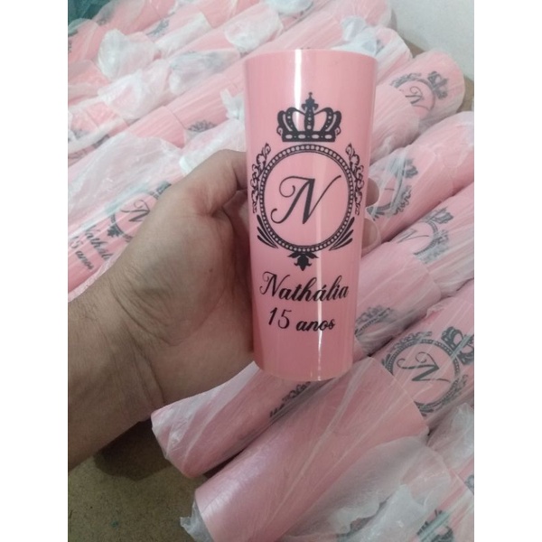 kit com 100 unidade já personalizada em uma cor de gravação e a mesma arte para todos os copos