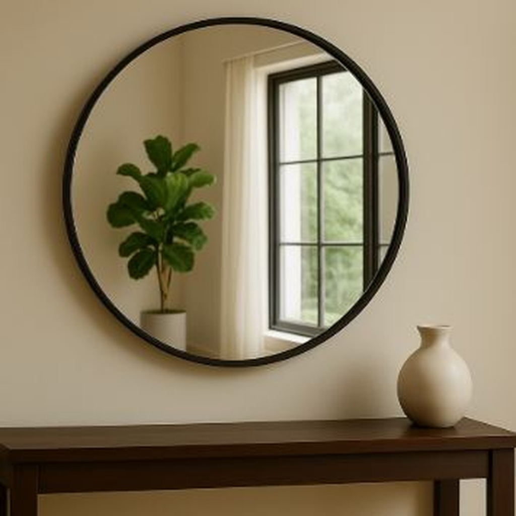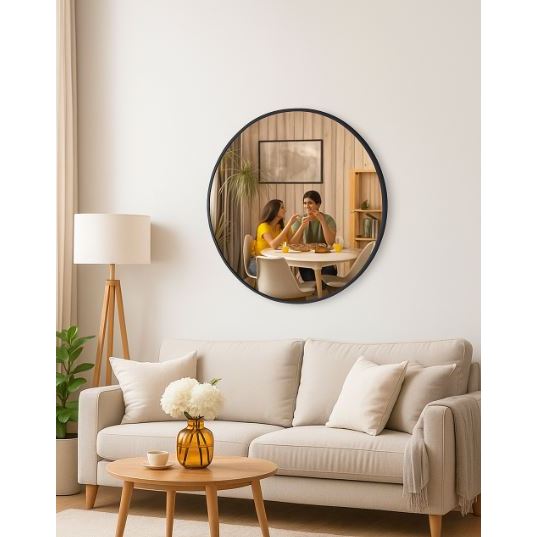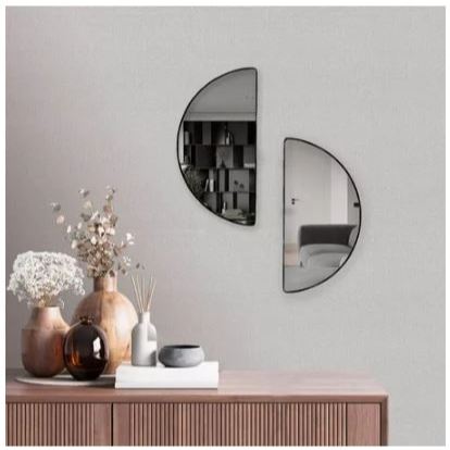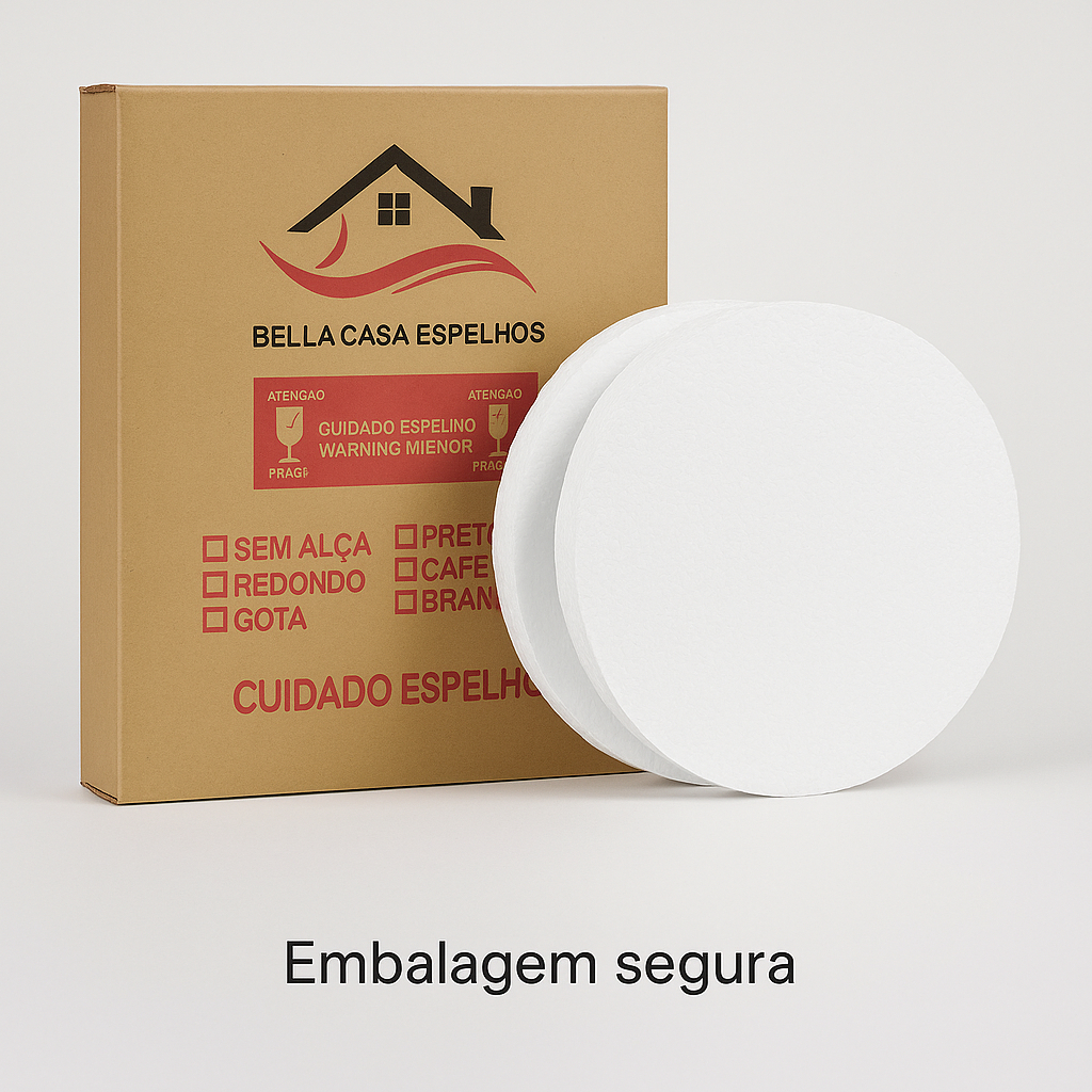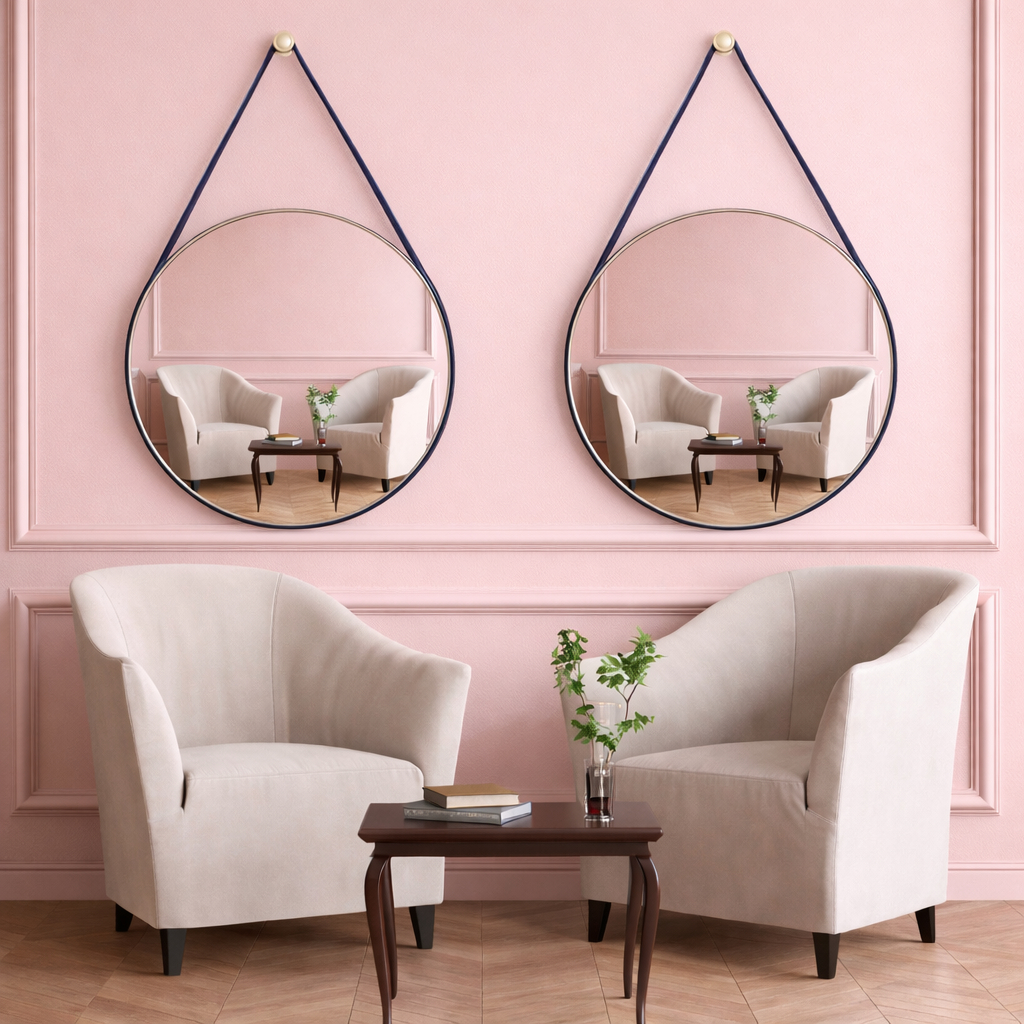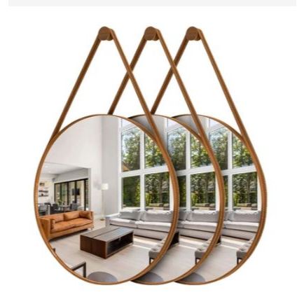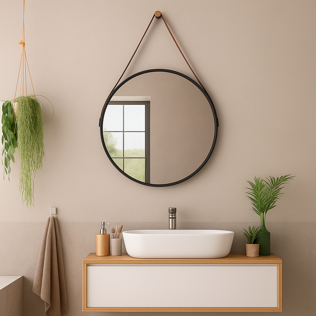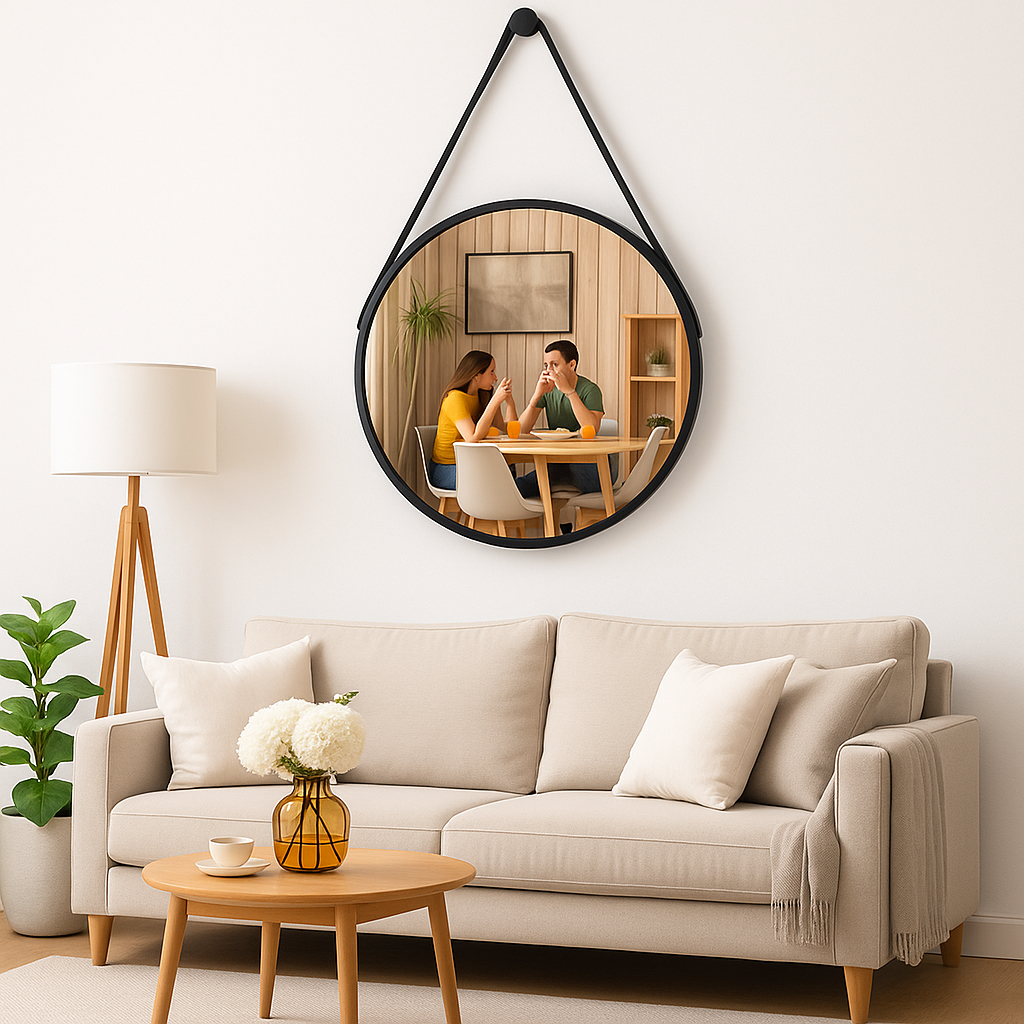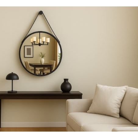 Espelho Decorativo Adnet 60 centímetros Alça couro Preto Design & Sofisticação [Pronta Entrega]