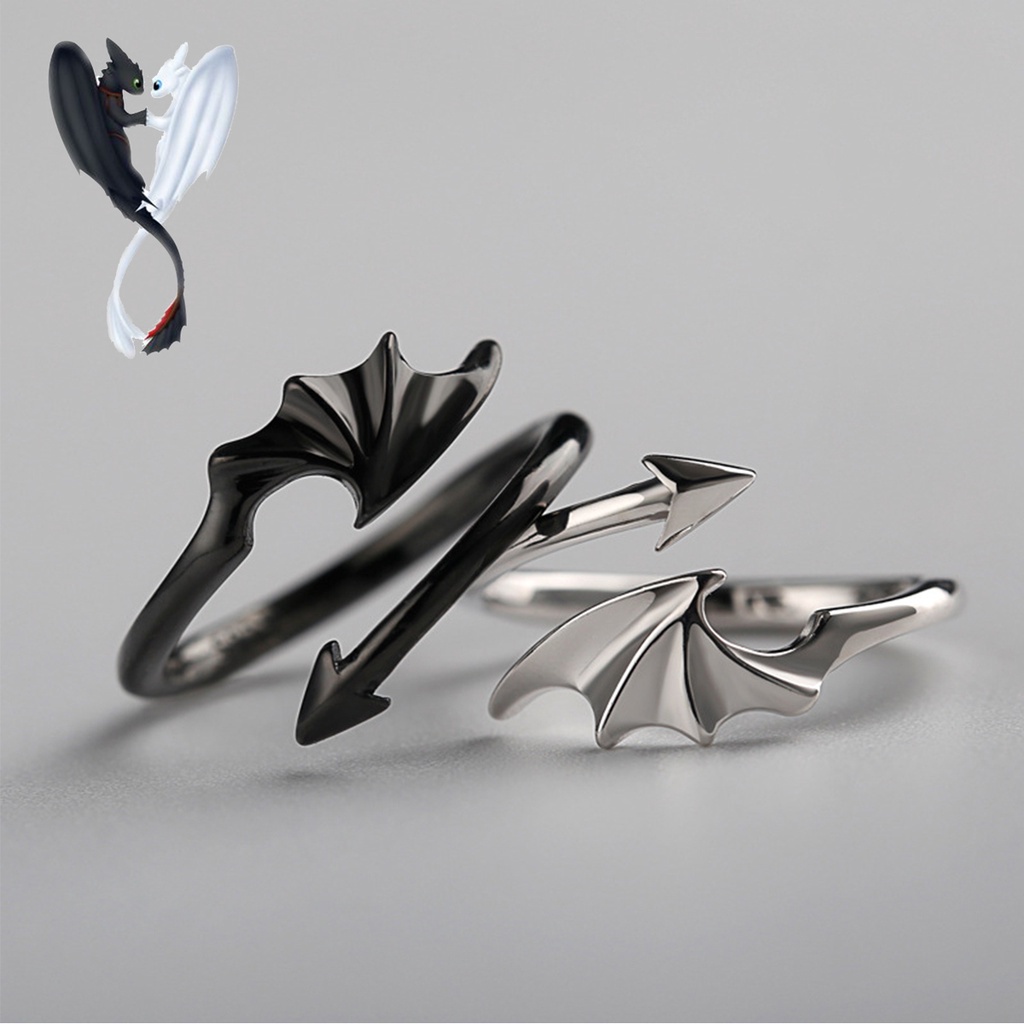 Anel Como Treinar o Seu Dragão Casal Banguela Furia da Luz Ajustável Preto ou Prata