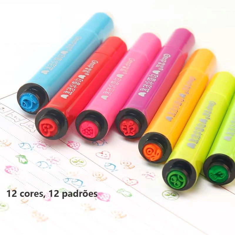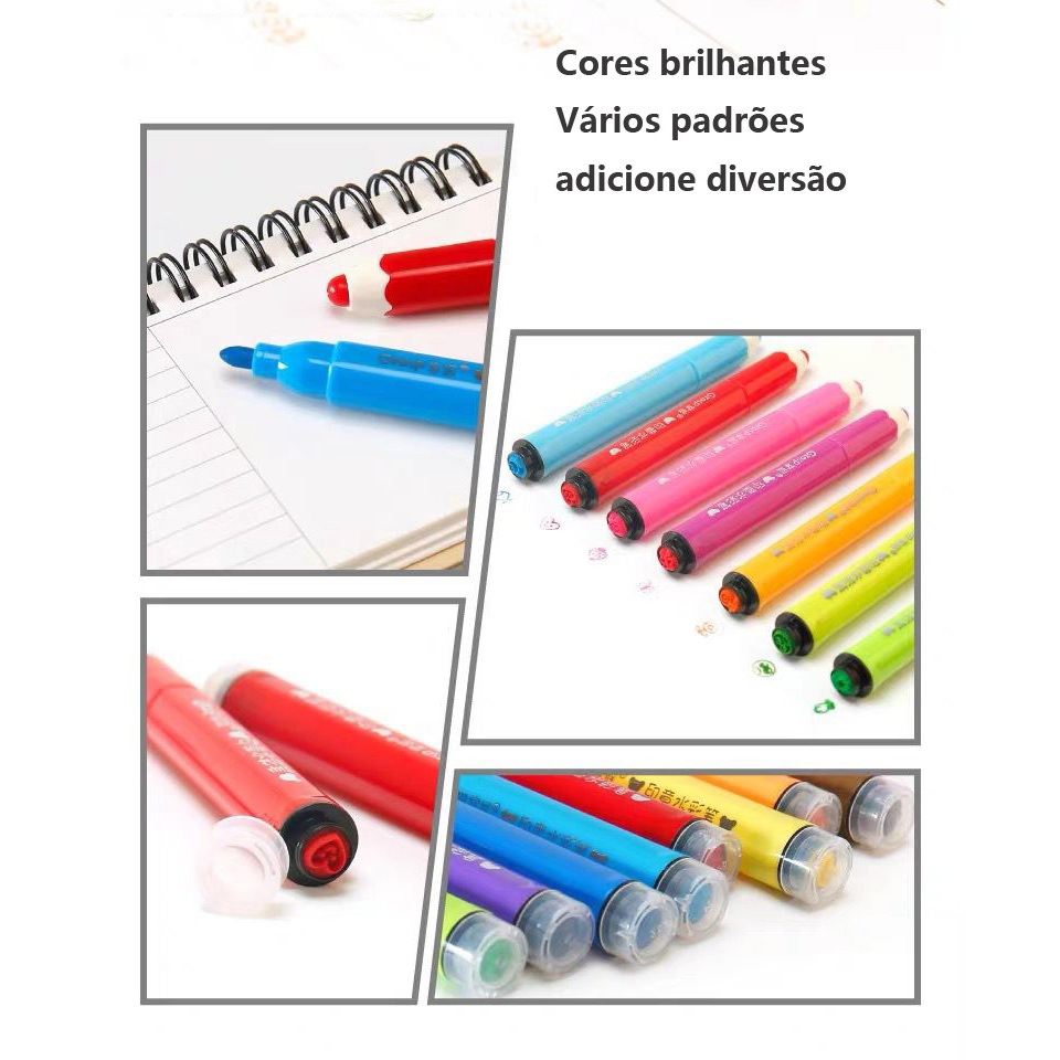 kit de 24 canetinhas hidrográfica lavável com carimbo-24 cores