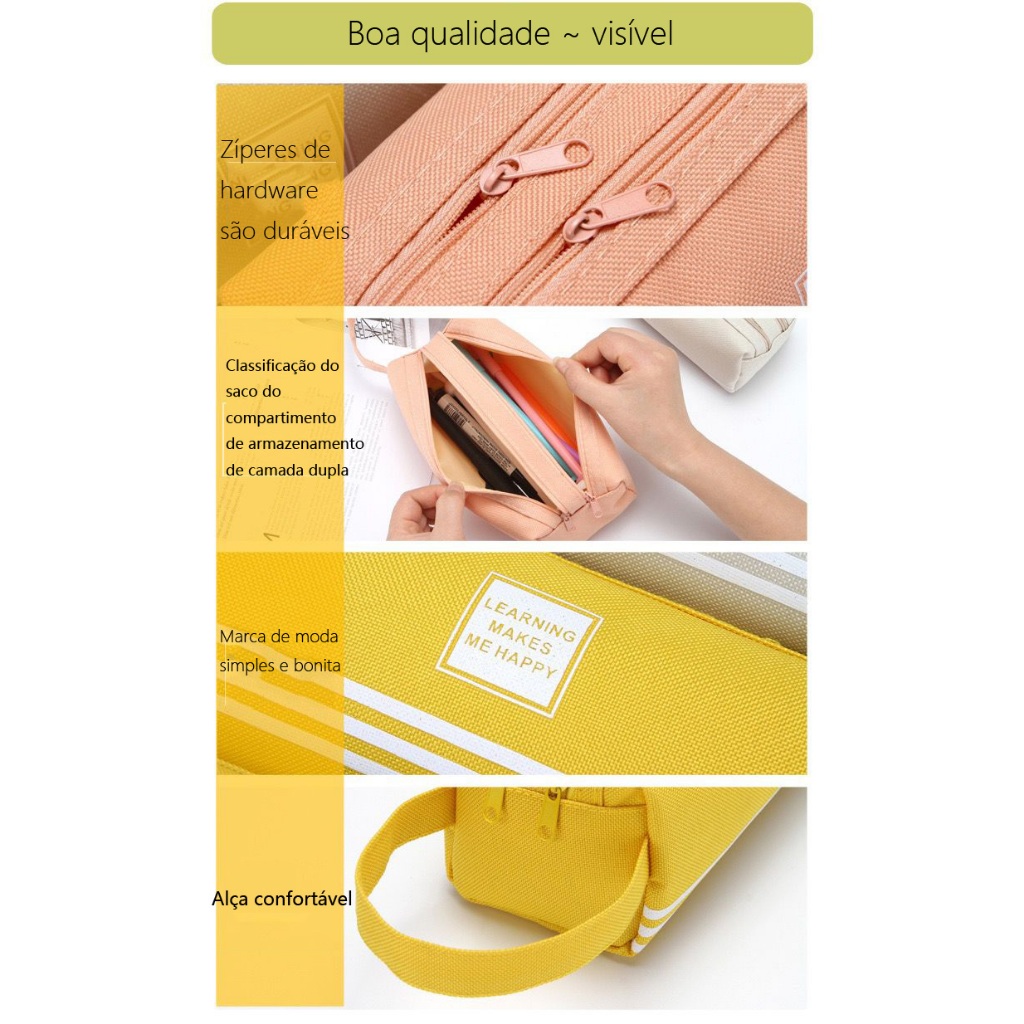 Estojo Escolar Feminino/ Masculino Box Juvenil Martelasse Estojo Escolar Organizador Grande Jumbo Box 2 Compartimentos