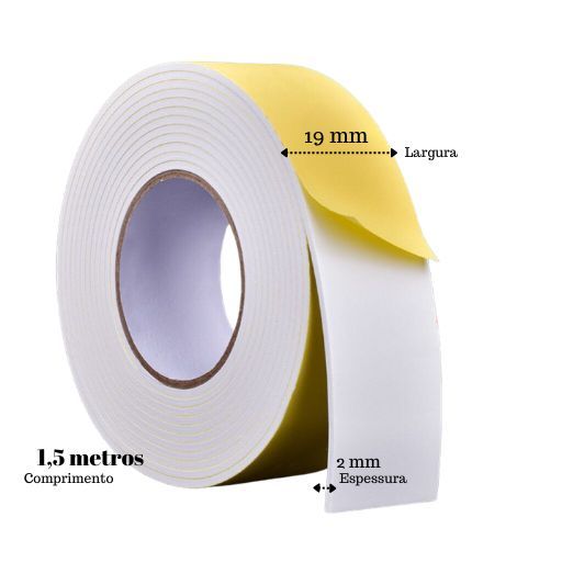 Fita Banana Adesiva de Espuma Dupla Face 19mm x 1,5m Profissional