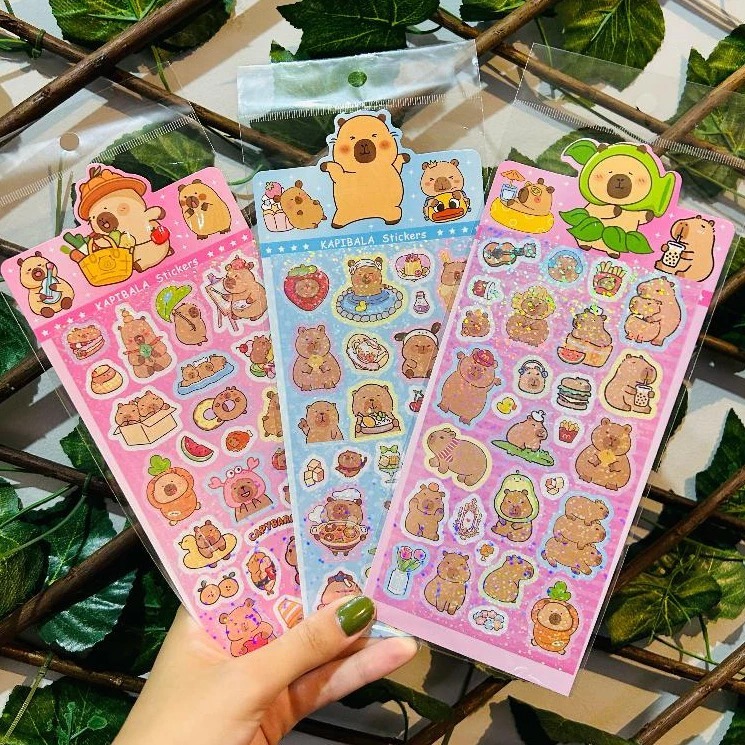 Kit 3 Folhas Adesivo Capivara Bloquinho 66 Adesivos SORTIDOS