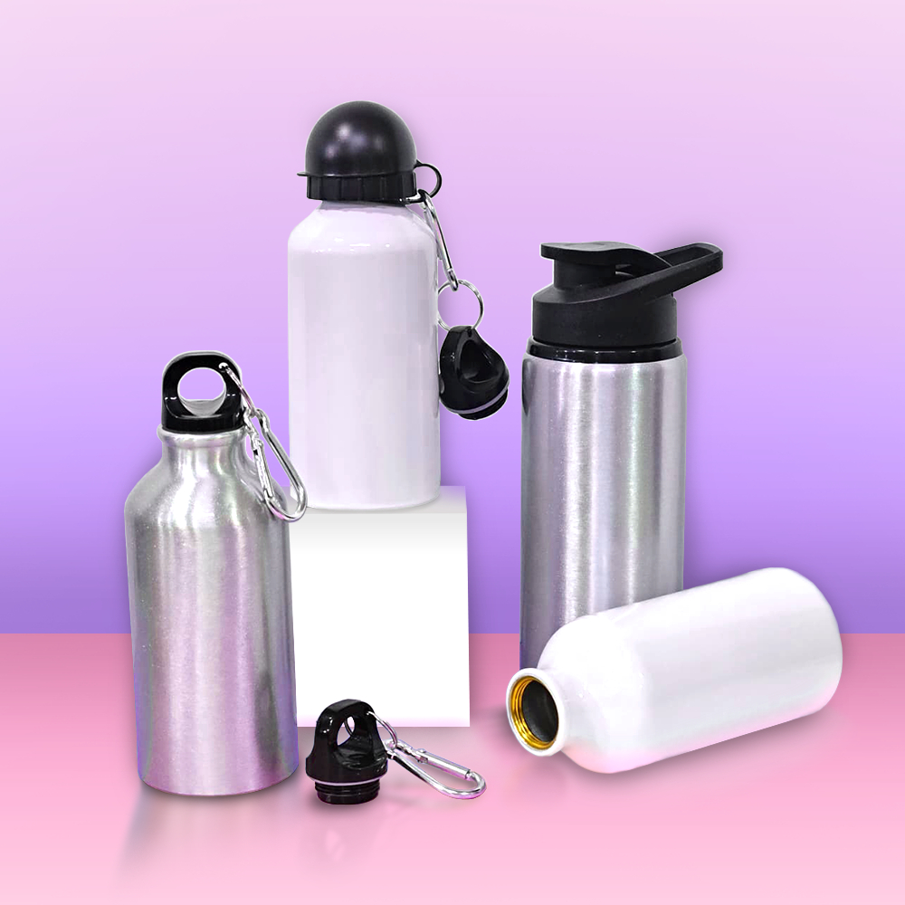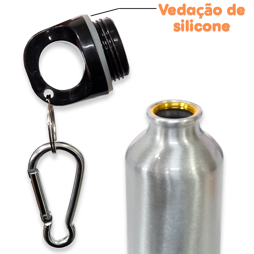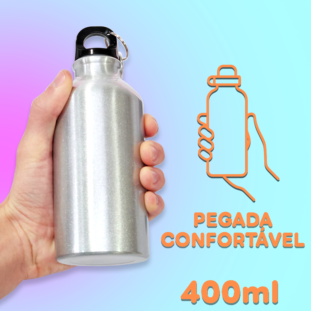 Garrafa Térmica Esportiva 400ml Básica Tampa com Vedação + Mosquete Portátil - Prateada, Alumínio