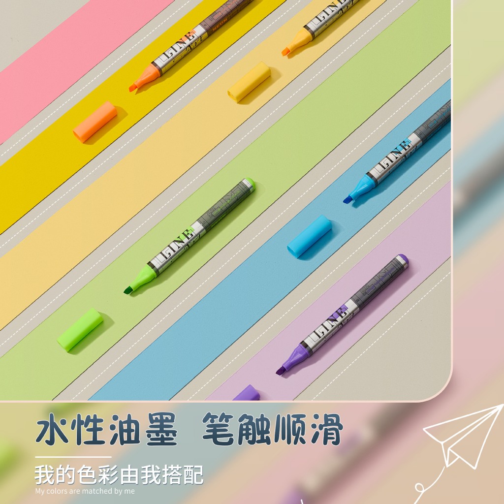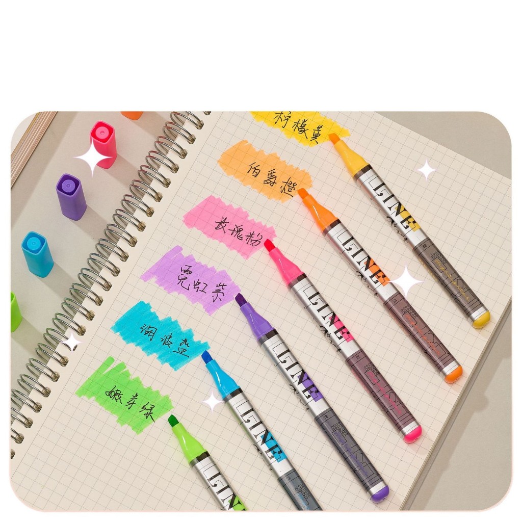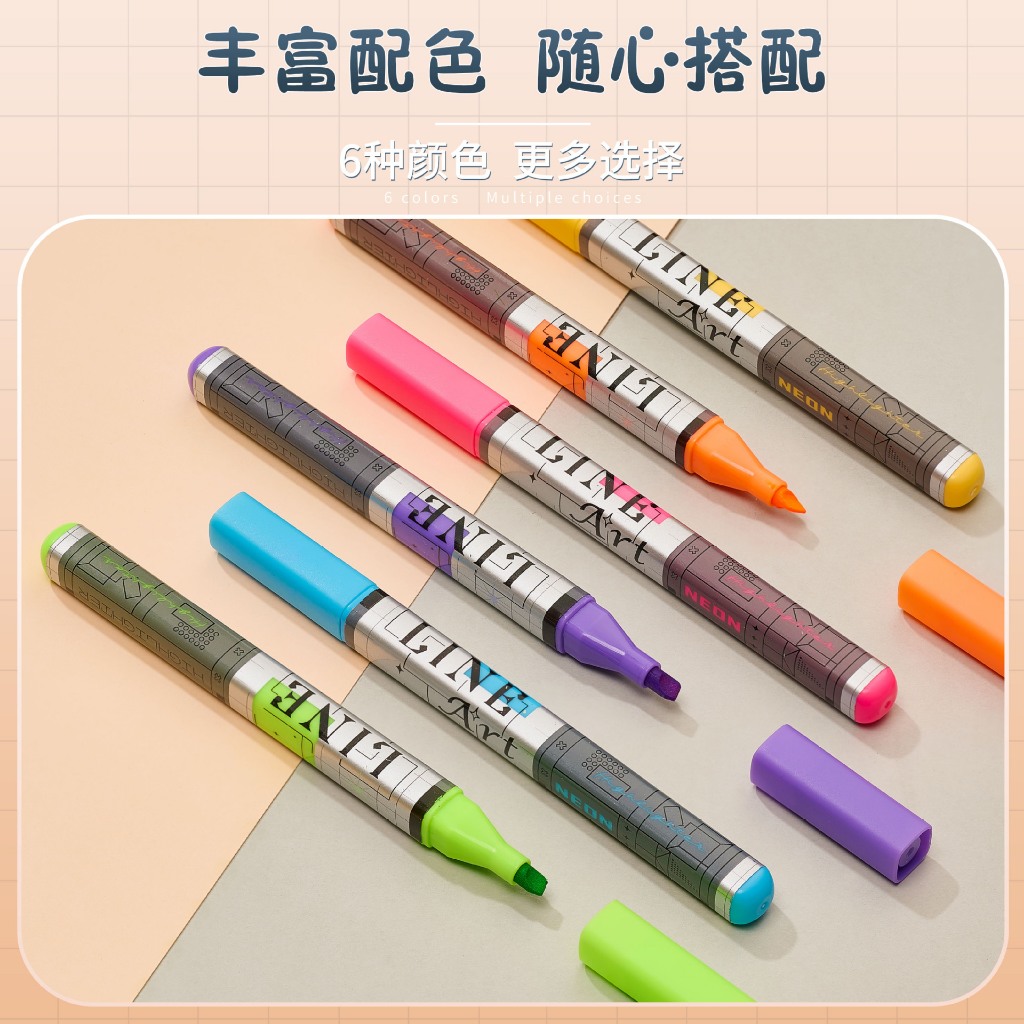 Conjunto de Marca Texto com 6 Cores Vibrantes Neon Chanfrada Escolar Marcador Papelaria