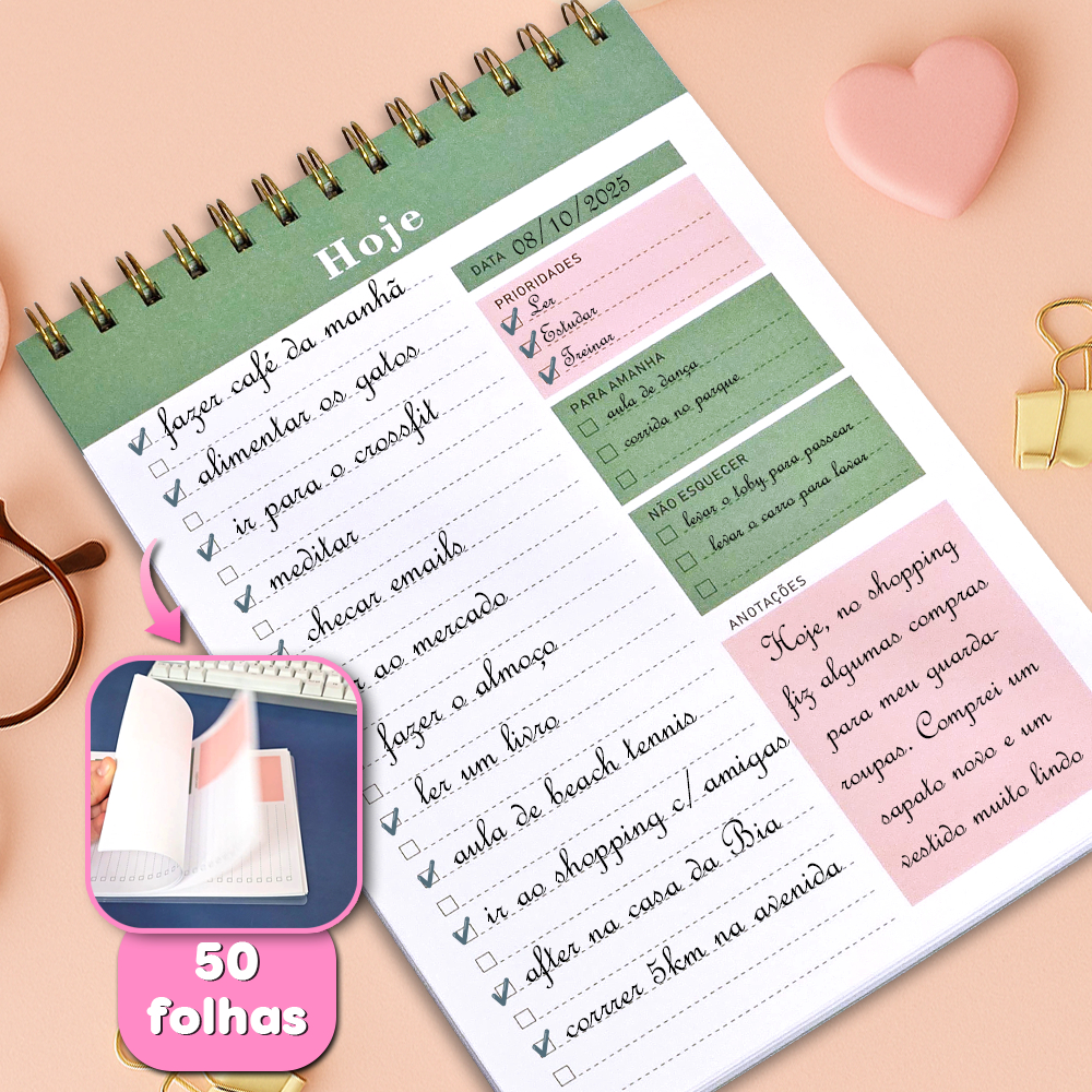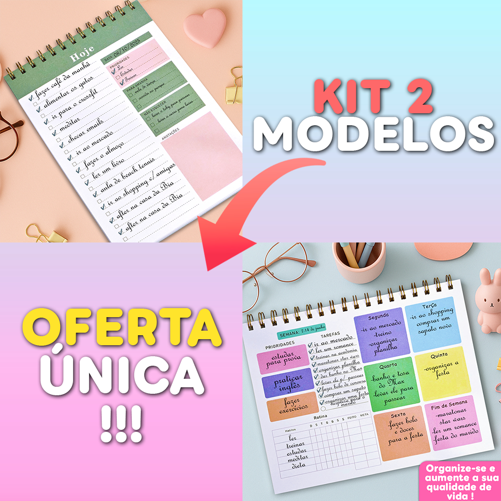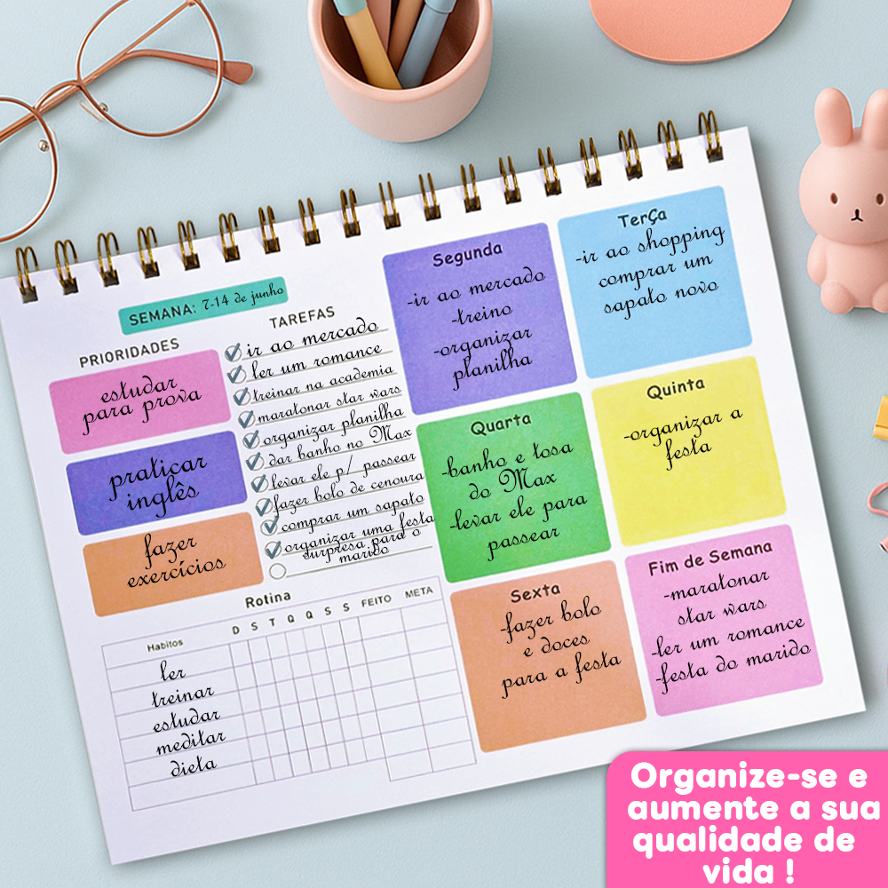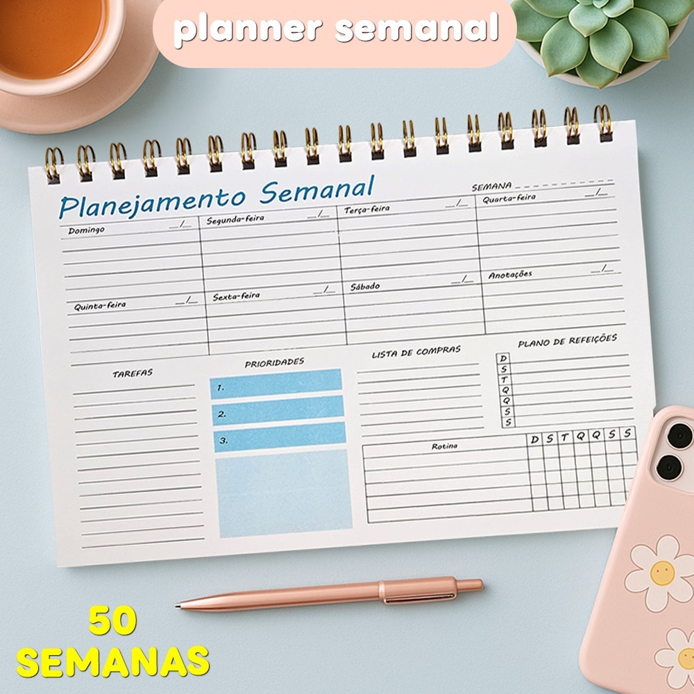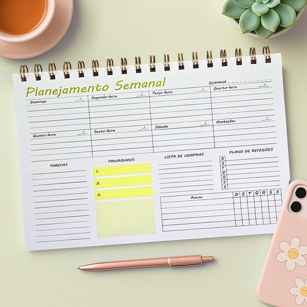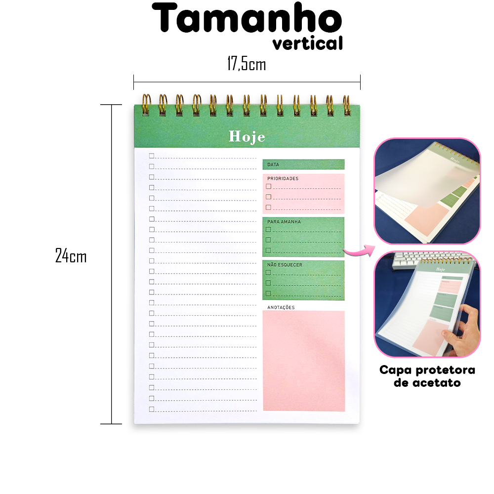 Planner Diário/Semanal 50 Folhas Com Capa e Contra-Capa de Acetato - Vertical ou Horizontal / Diário ou Semanal