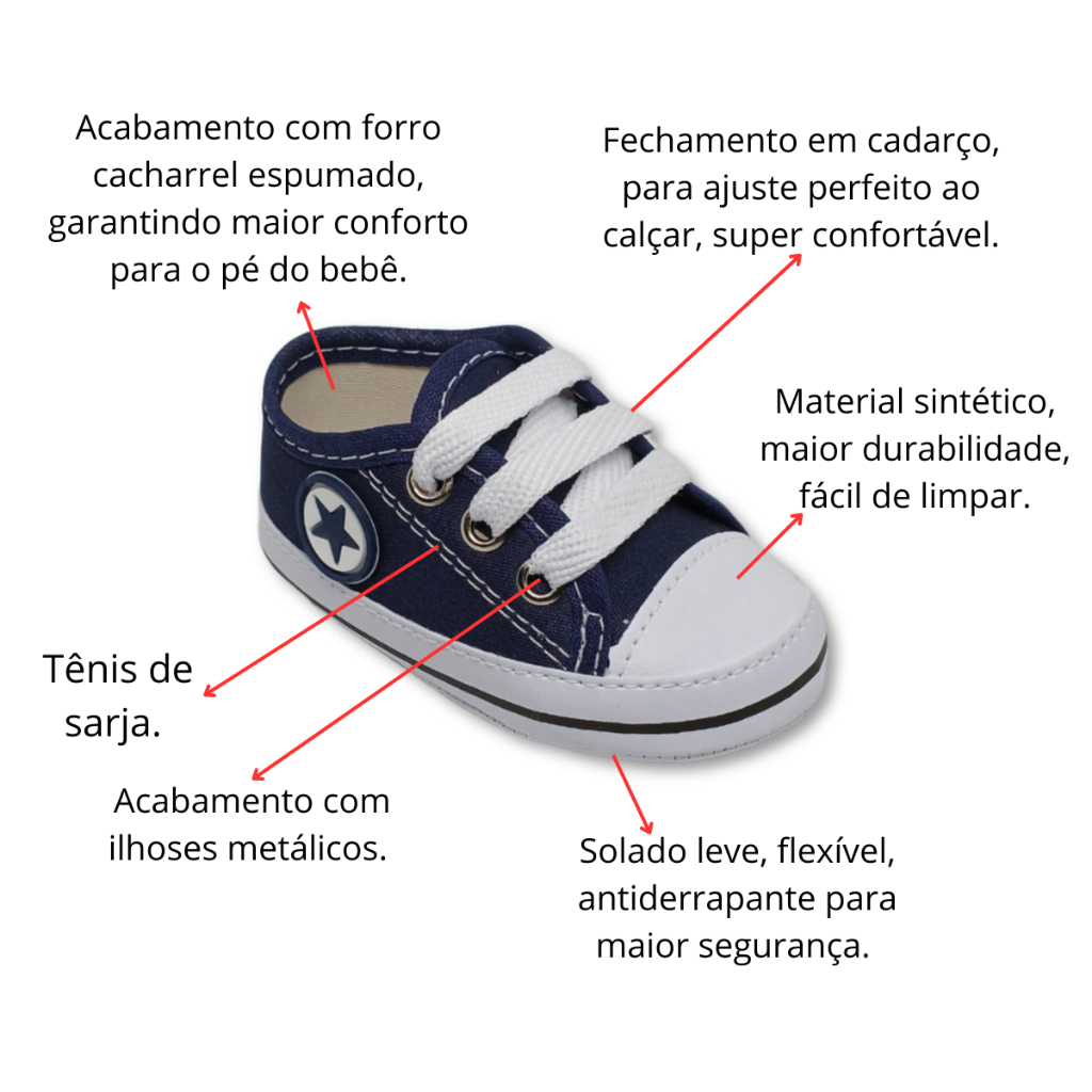 Tênis Star Sapatinho de Bebê Cano Baixo Menina e Menina Azul Marinho Recém-Nascido Direto da Fábrica