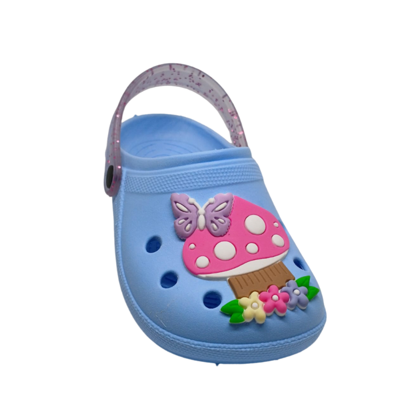 Sandália Chinelo Babuche Infantil Menina Leve Antiderrapante Macio Azul Cogumelo