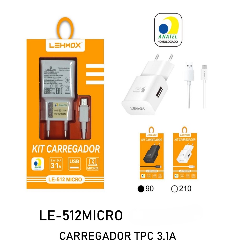 kit 10 Carregador de Celular Super Charging 3.1A Cabo V8 Lehmox - LE-512/508