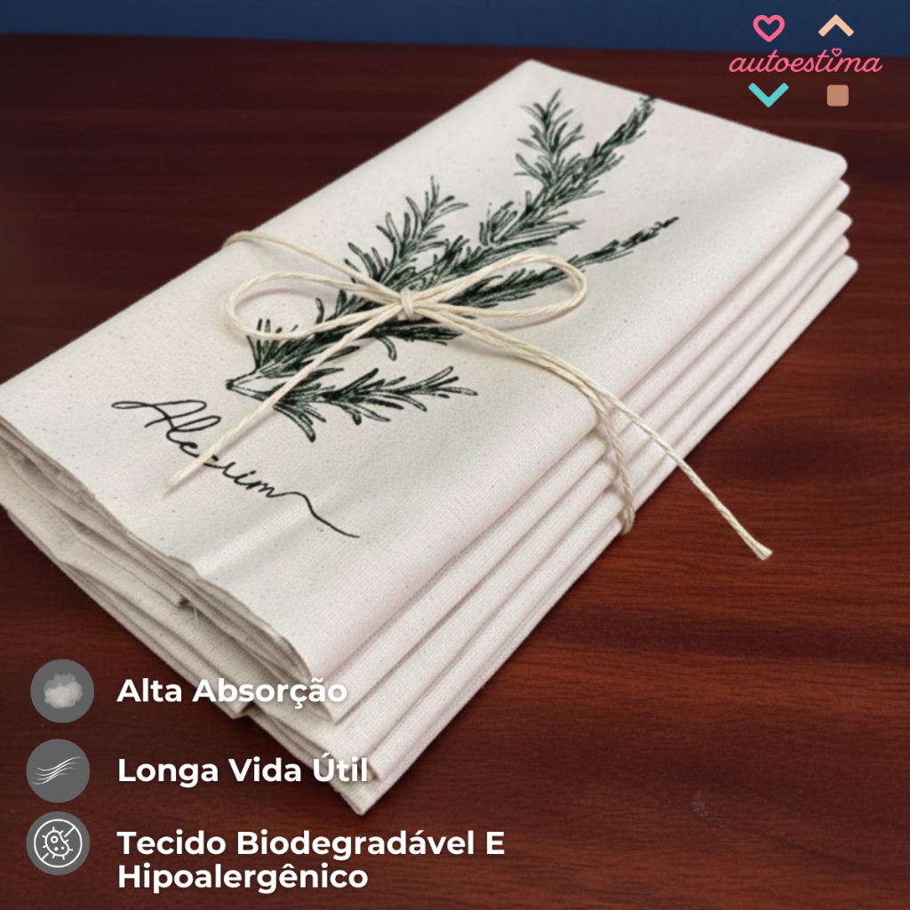 Kit 5 Panos de Prato Rústico Minimalista Grande Bege Estampado Tempero 100% Algodão 45x72cm-Sortido
