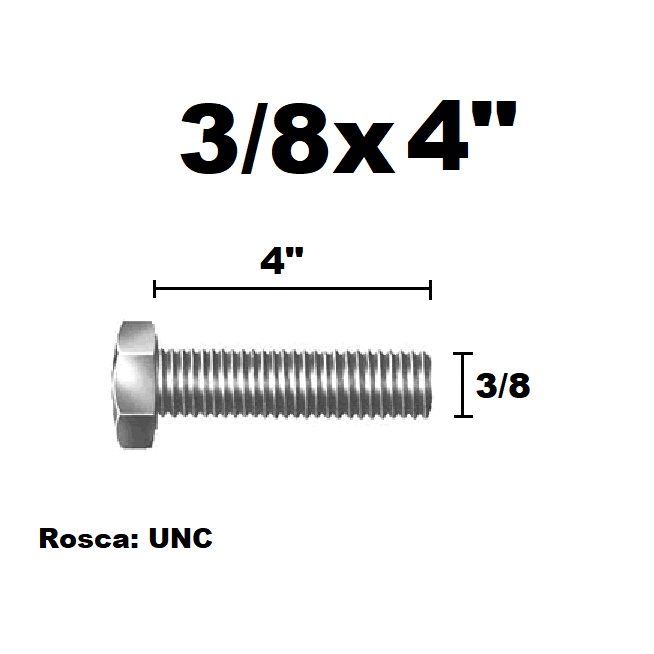 Kit 5 Unidades Parafuso Sextavado 3/8x4 + 5 porcas 3/8