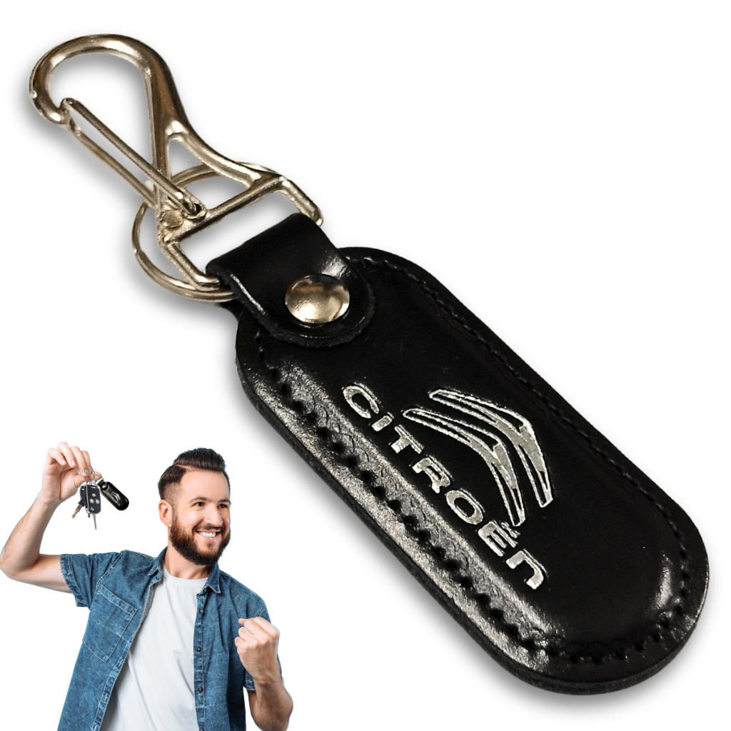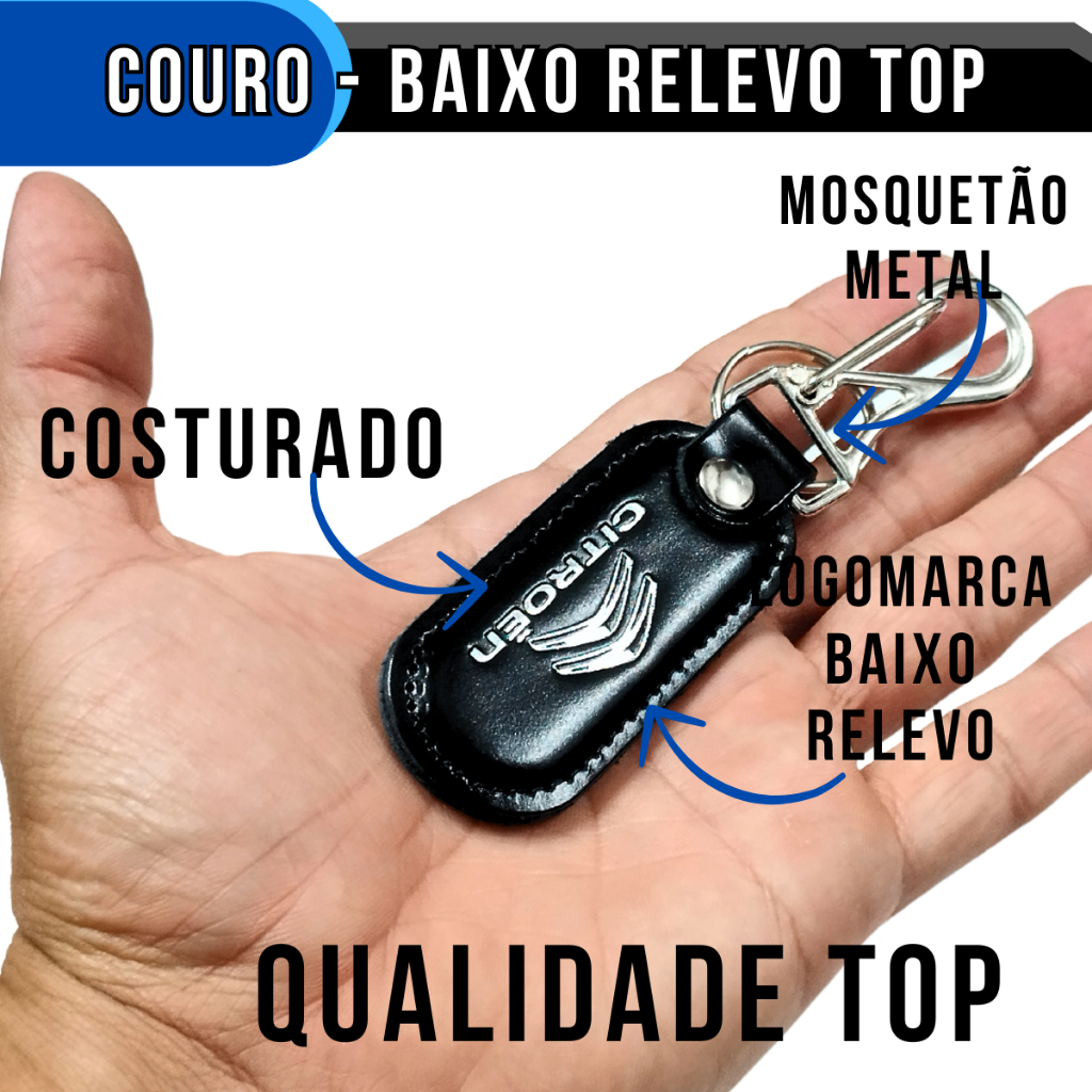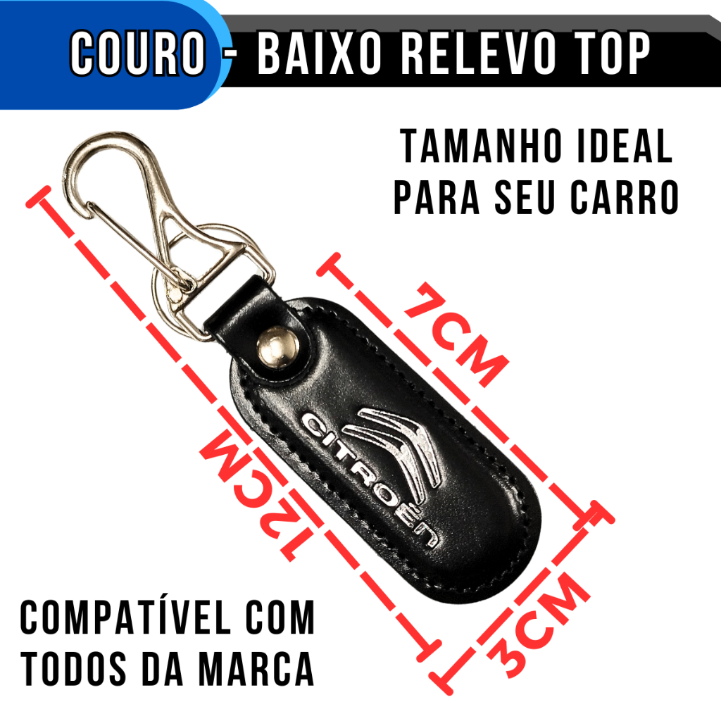 Chaveiro Citroen Couro Preto Carro Mosquetão Automotivo Universal
