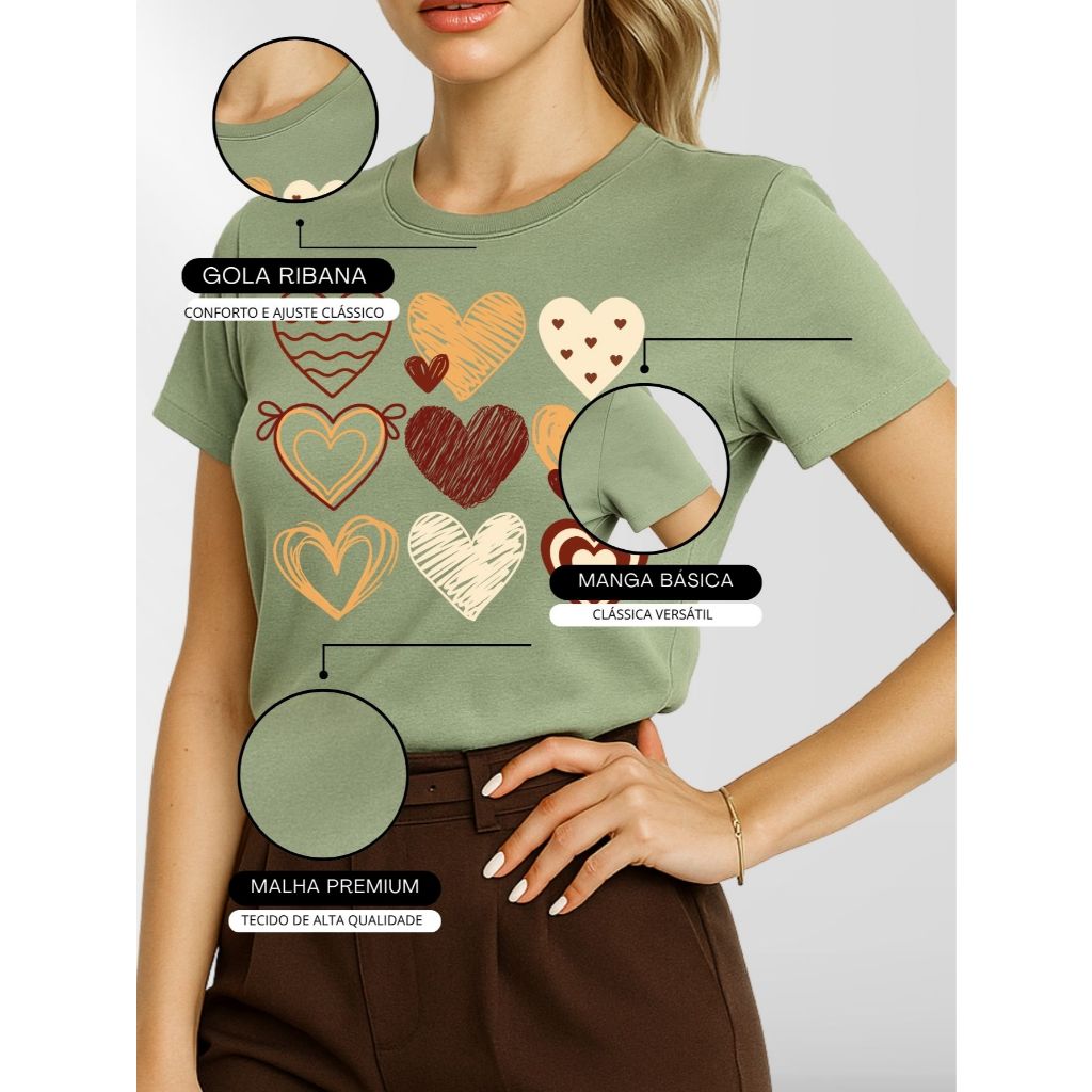 Blusa Feminina Camiseta Escolha Cor e Tamanho 100% Algodão Malha Premium Manga Curta Gola Redonda