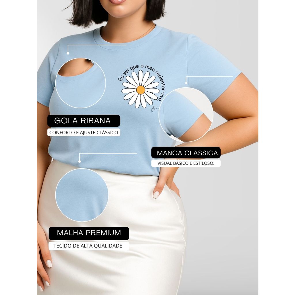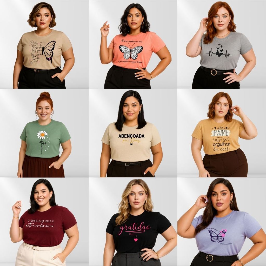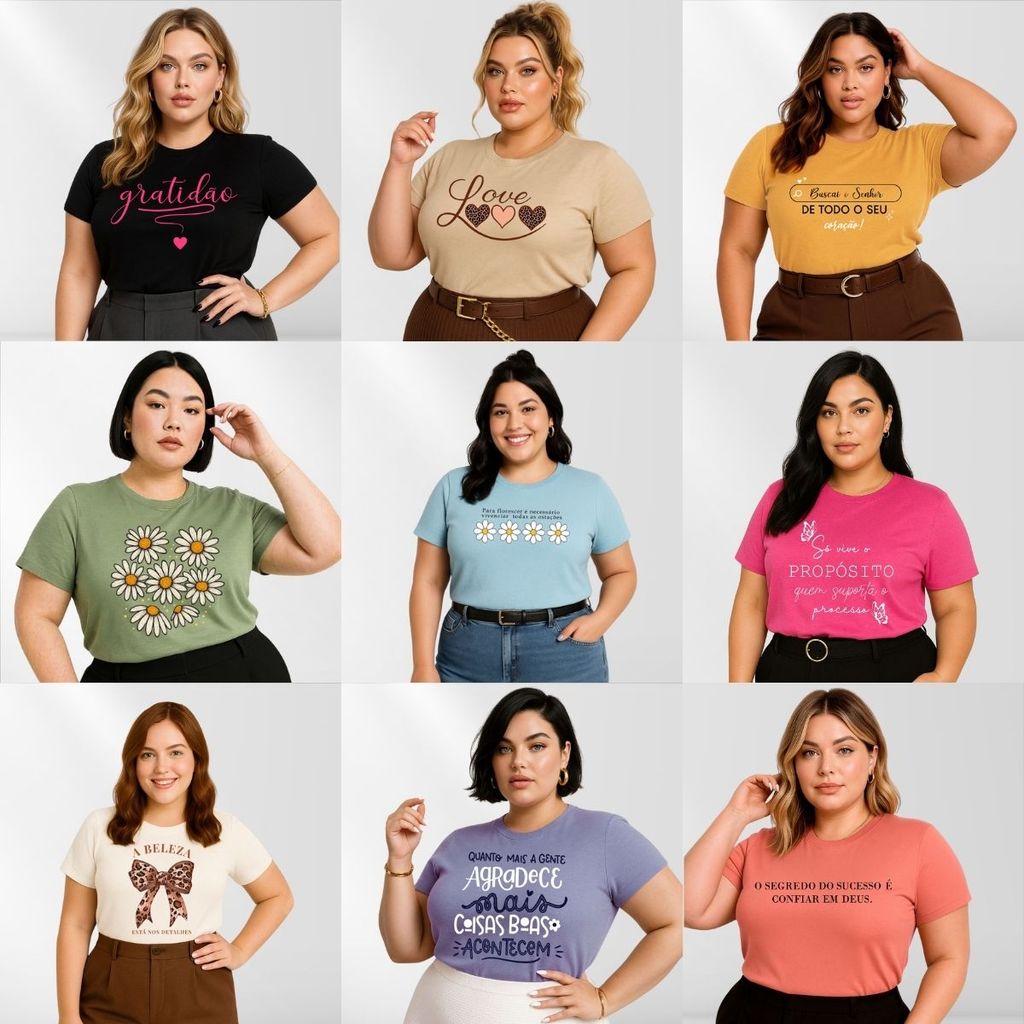 Kit 4 Blusas Feminina Plus Size Manga Curta Gola Redonda Básica Casual