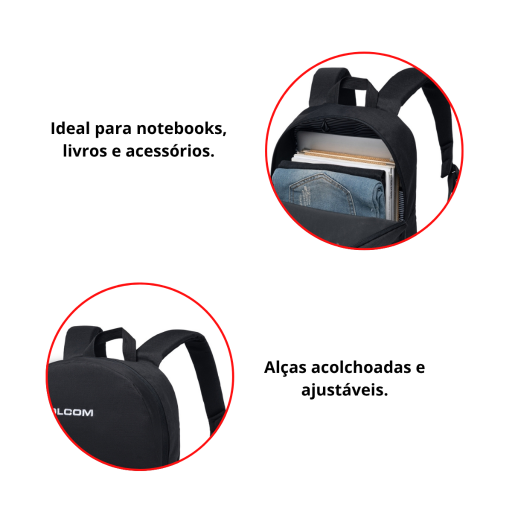 Mochila Bolsa Volcom Streetwear Universitária Notebook Reforçada