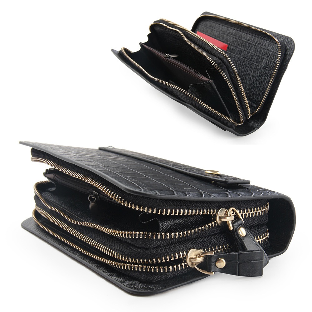 Carteira Feminina Pasta Preta Porta Cartões Zíper Crosswave
