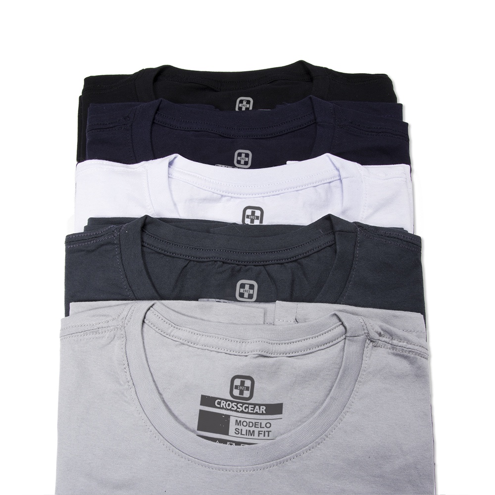 Kit 5 Camisetas Masculina Básica Lisa Algodão Slim Premium 100% Algodão
