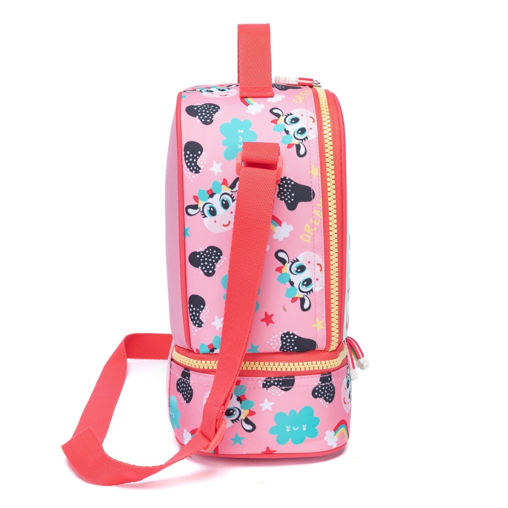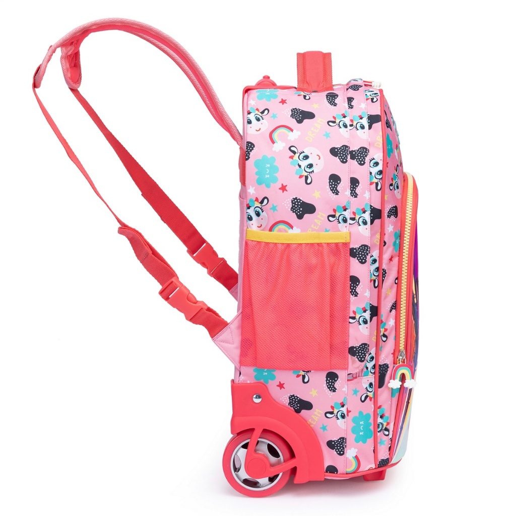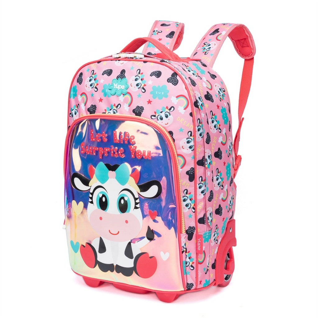 Mochila Infantil Bolsa Rodinhas Estojo Lancheira Termica Vaquinha