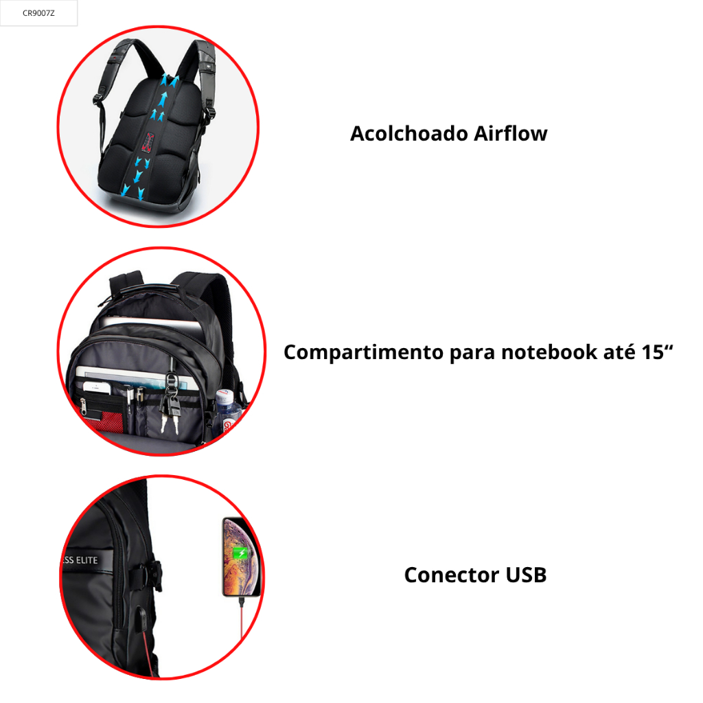 Mochila Masculina Executiva Notebook Reforçada Crosswave 36L