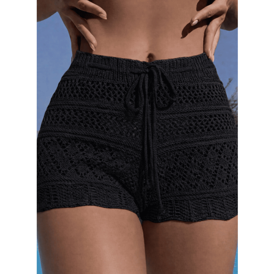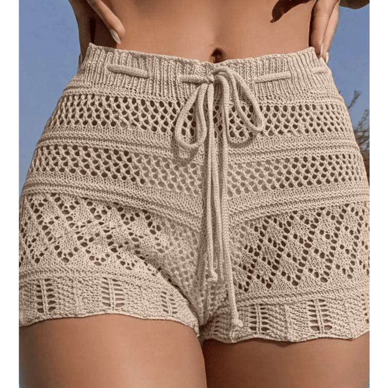 Shorts Saída de Praia Feminino Tricot Cos Alto Cordão Transpassado Moda Verão