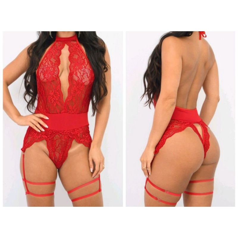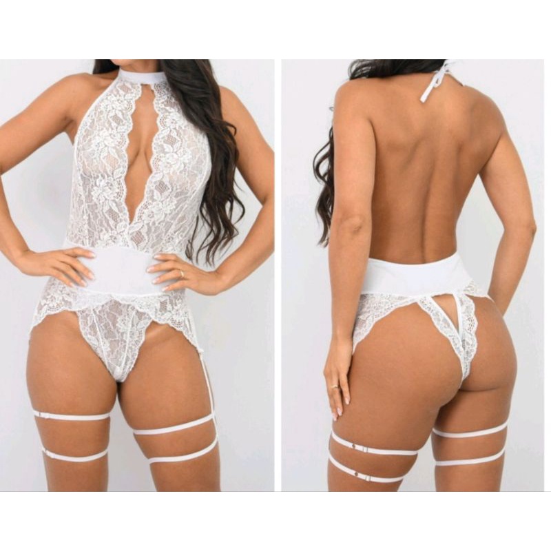 Body Cavado de renda com cinta liga luxo body feminino lingerie sensual Body Helen