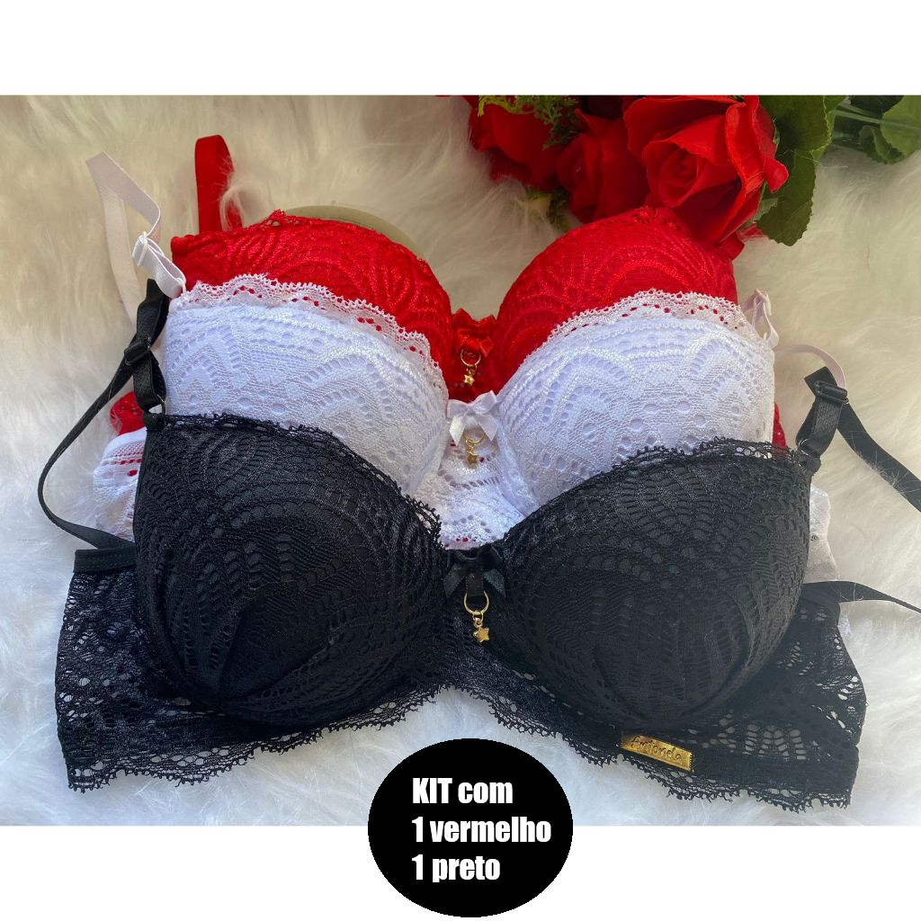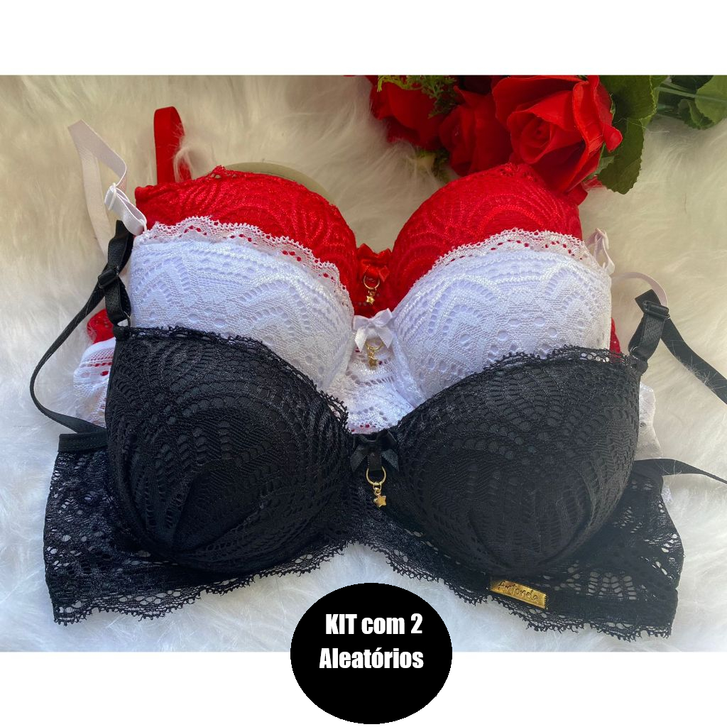 KIT 2 Sutiã de BOJO Rendado Pingente Soutien de Renda Conforto Moda Intima Lingerie