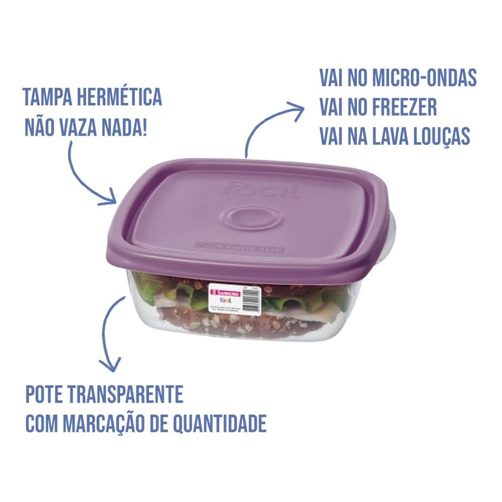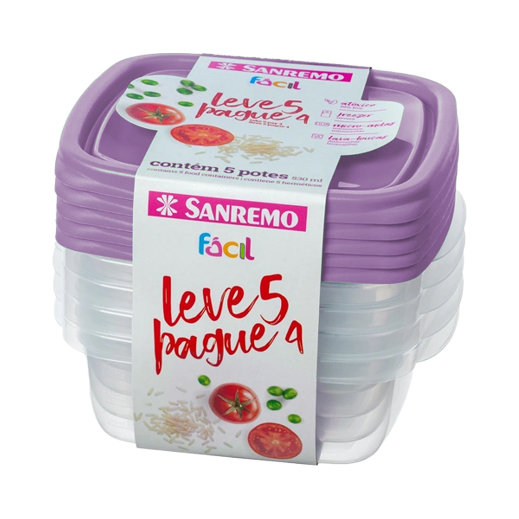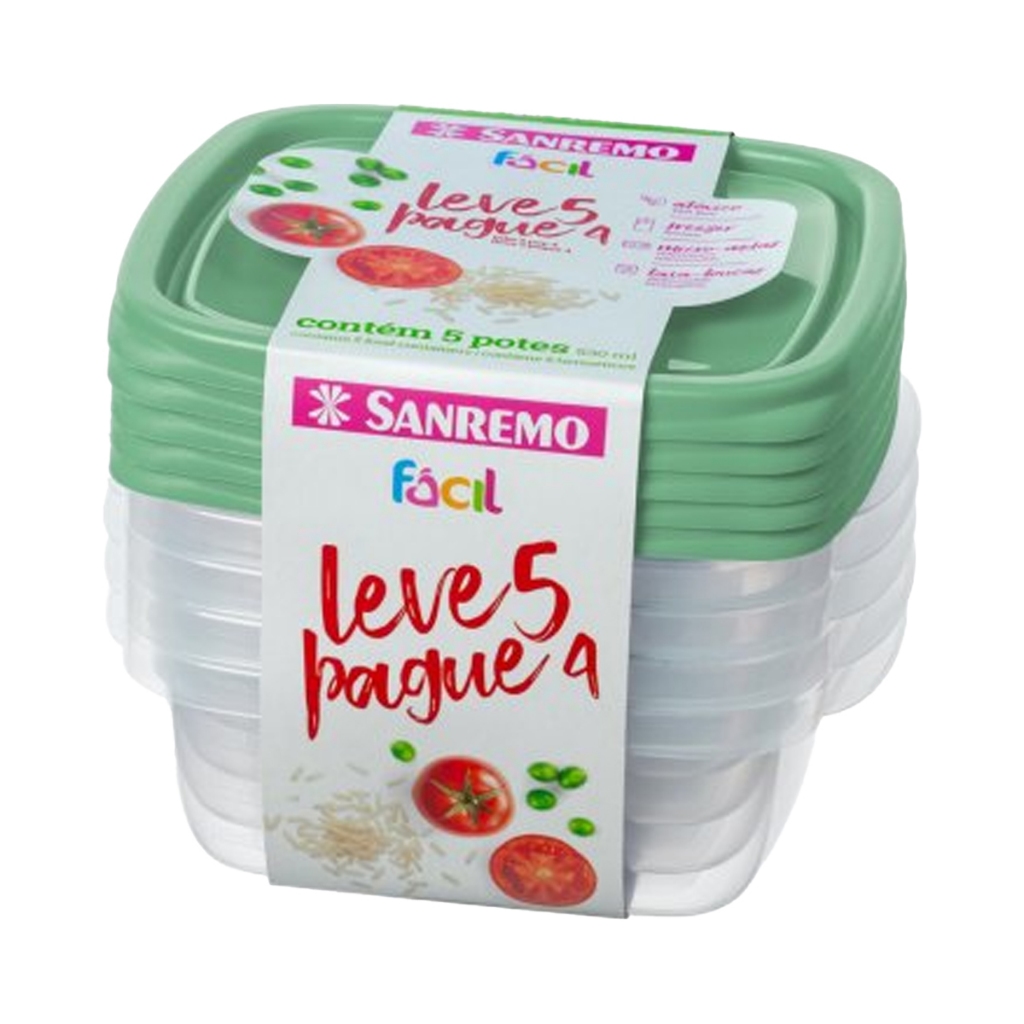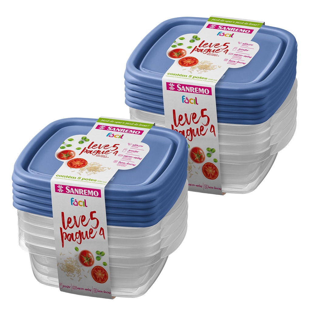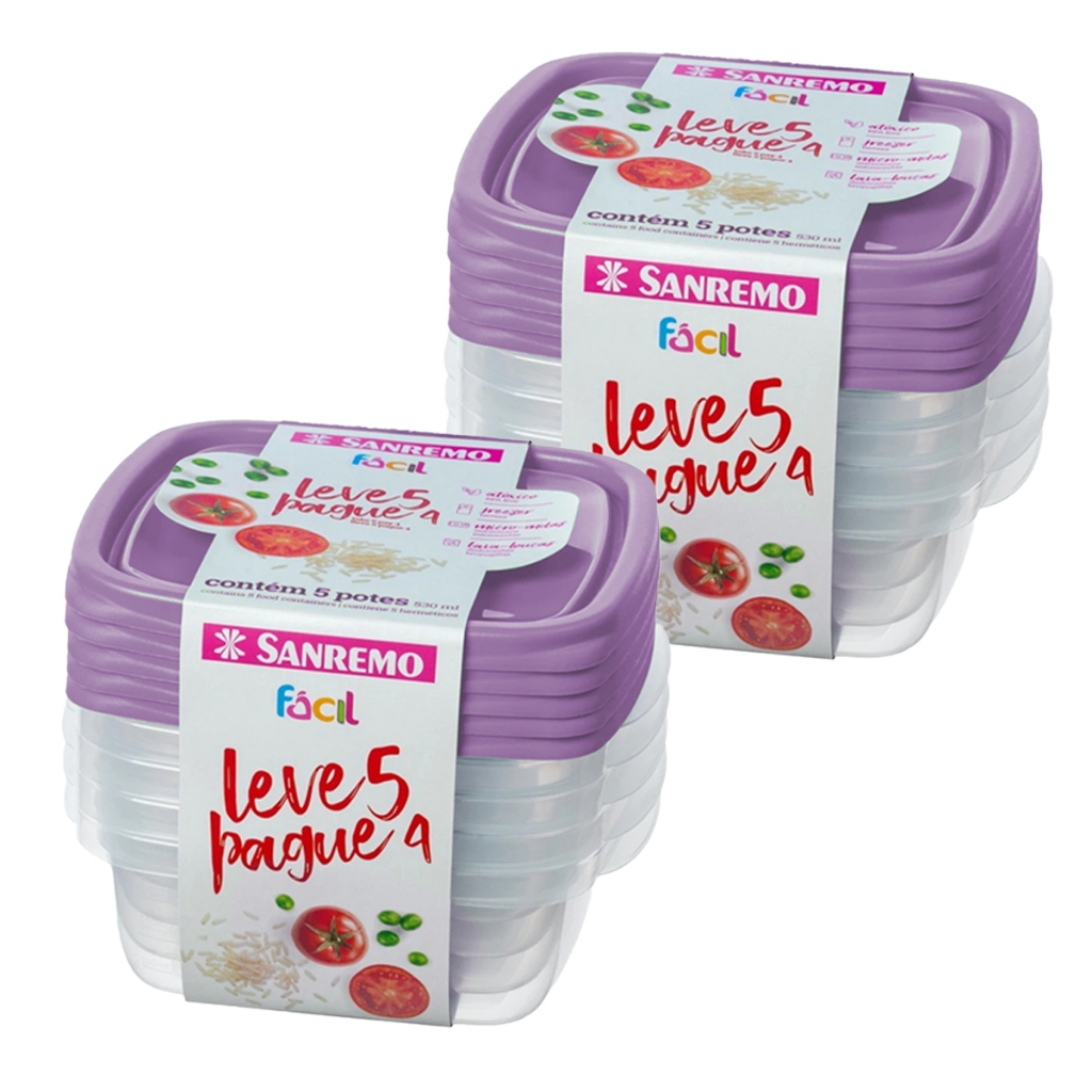 Kit 10 Potes Herméticos 530ml Plástico Sanremo Marmita Vasilha Geladeira Freezer Micro-ondas Livre de BPA