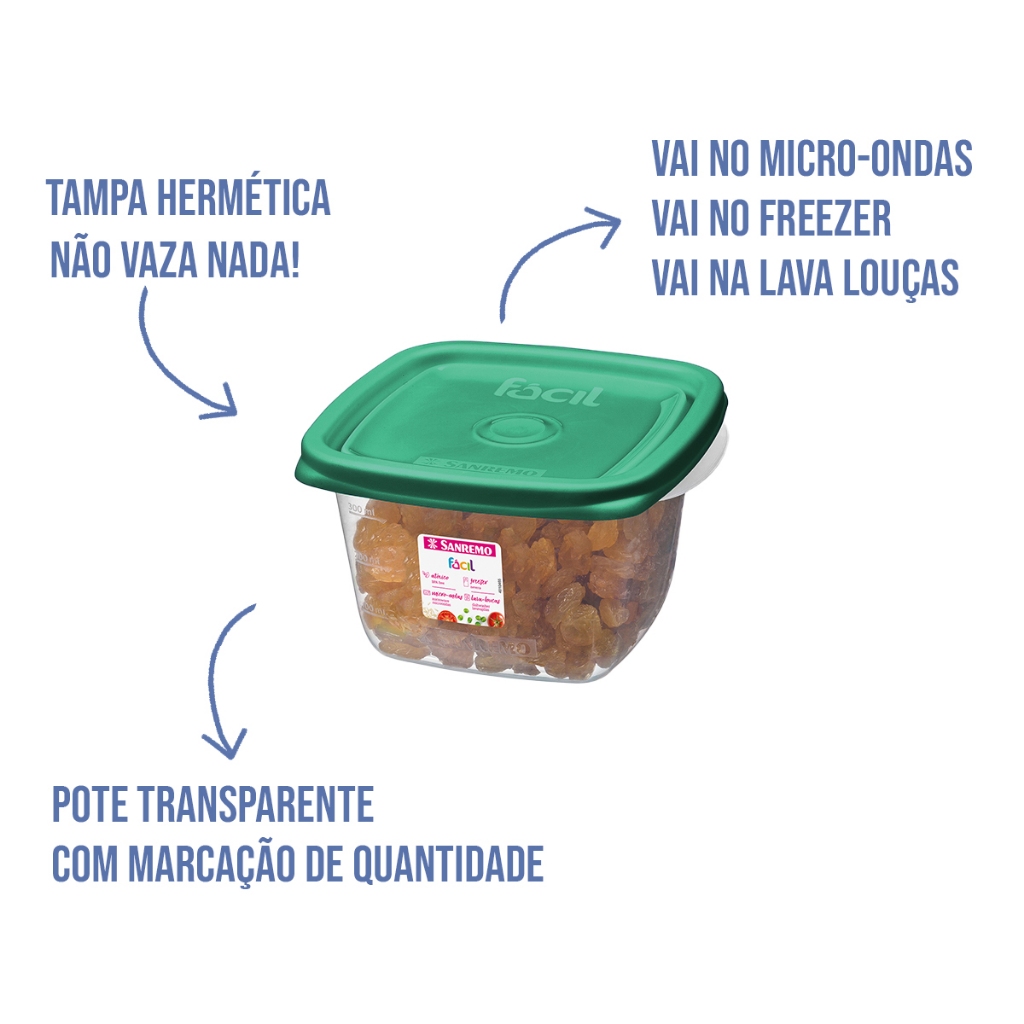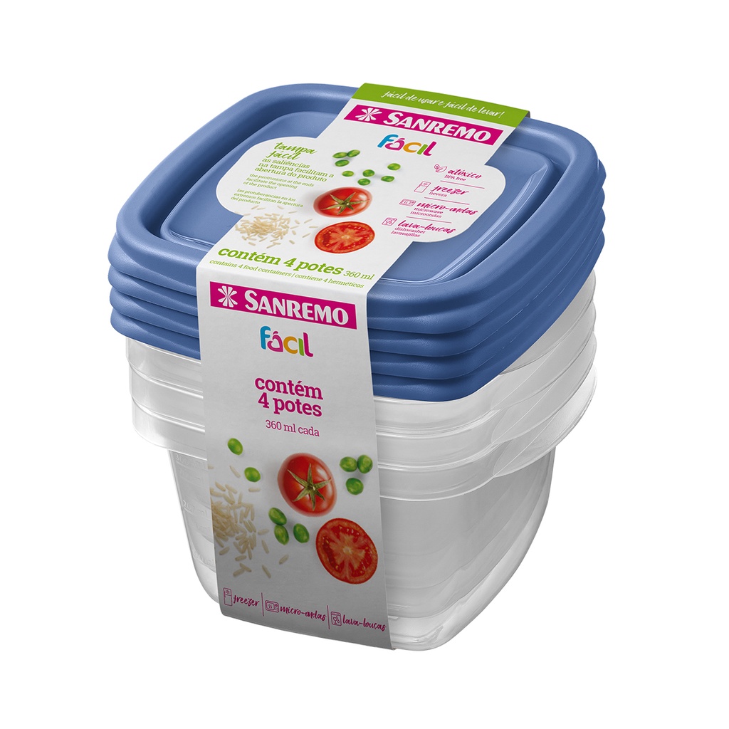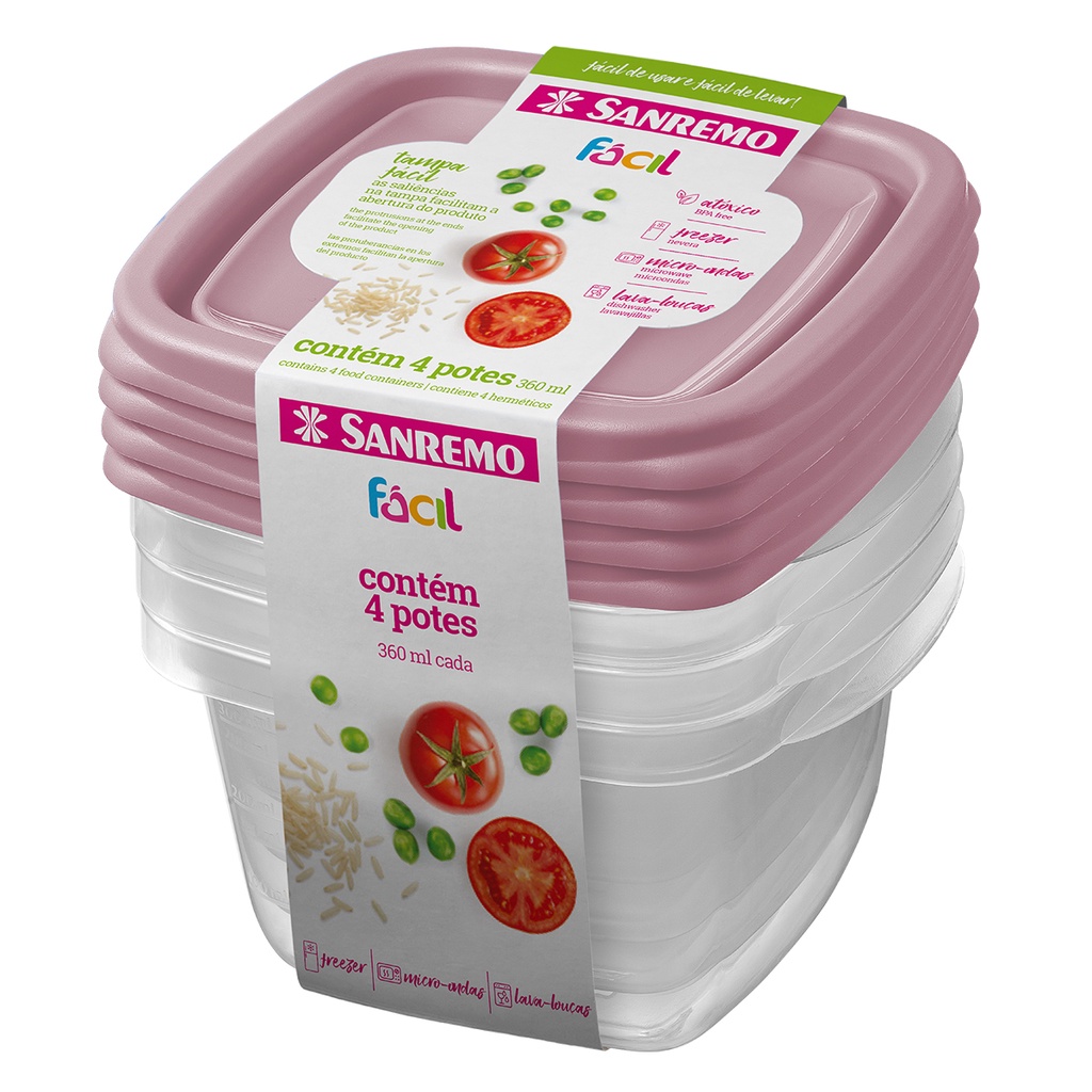 Kit 4 Potes Herméticos Plástico Com Tampa Sanremo 360mL Jogo de Vasilha Conjunto Marmita