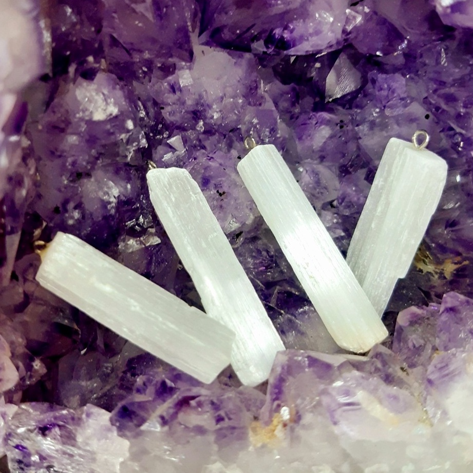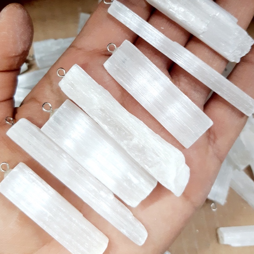 pingente selenita branca pedra natural unidade - pingente de pedra natural selenita branca