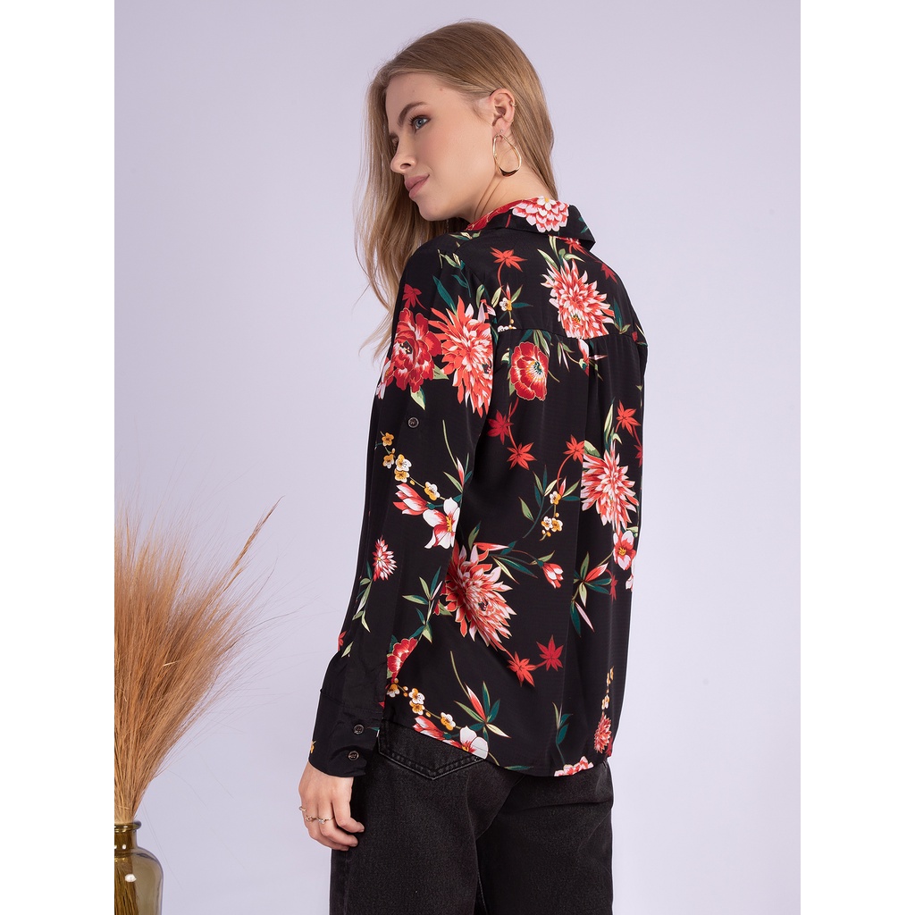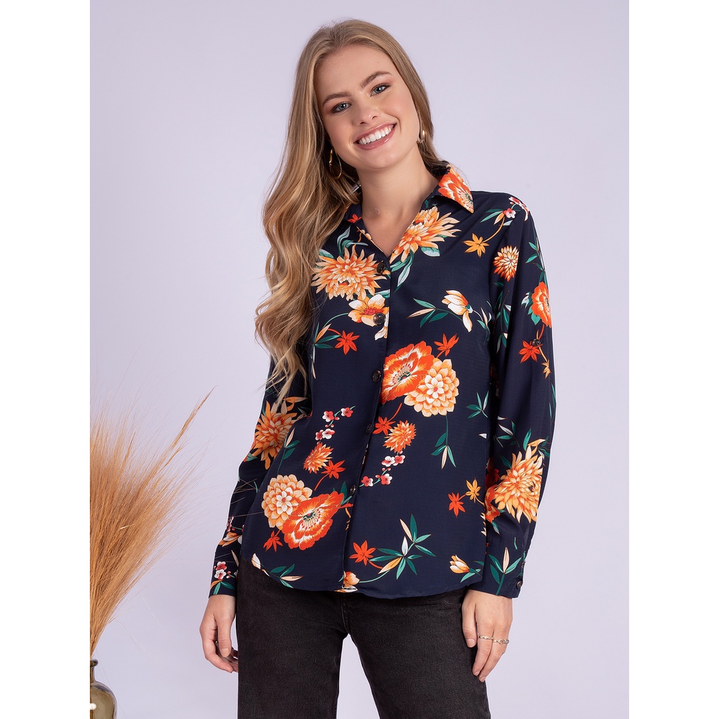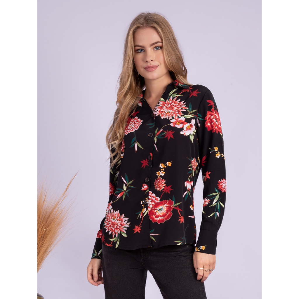 KA74475 CAMISA FEMININA ESTAMPA FLORAL LANÇAMENTO 2024