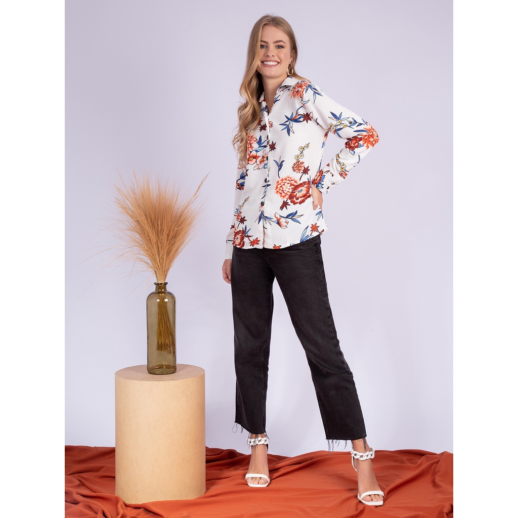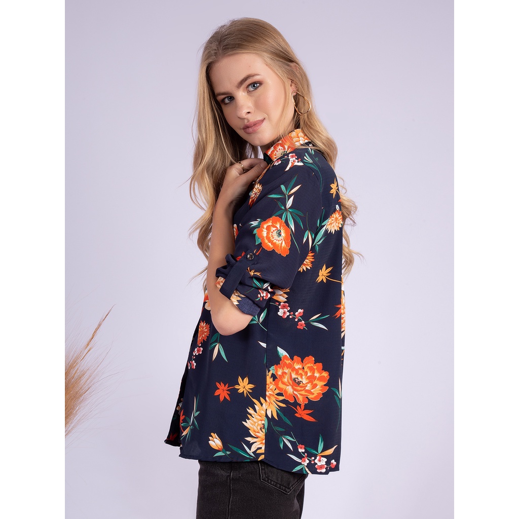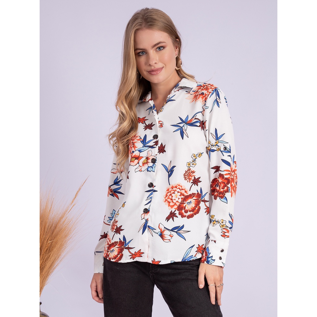 KA74475 CAMISA FEMININA ESTAMPA FLORAL LANÇAMENTO 2024
