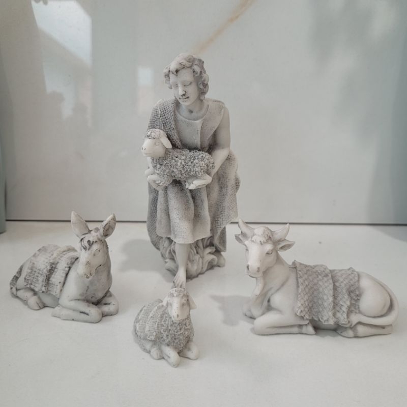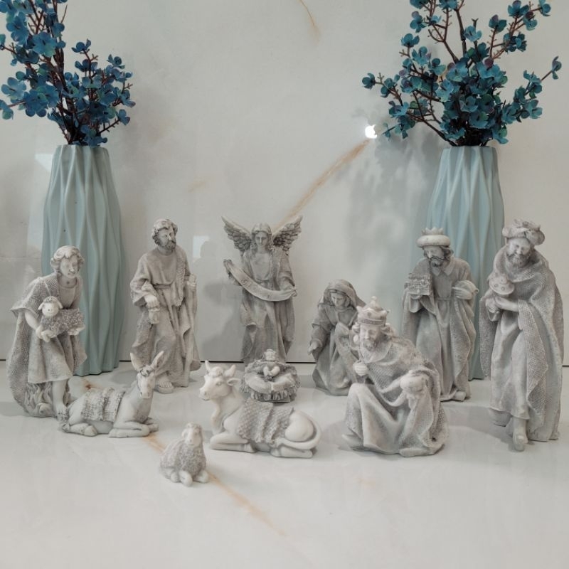 Presépio completo resina modelo 2025 acabamento em mármore pra área externa 11 peças 15cm