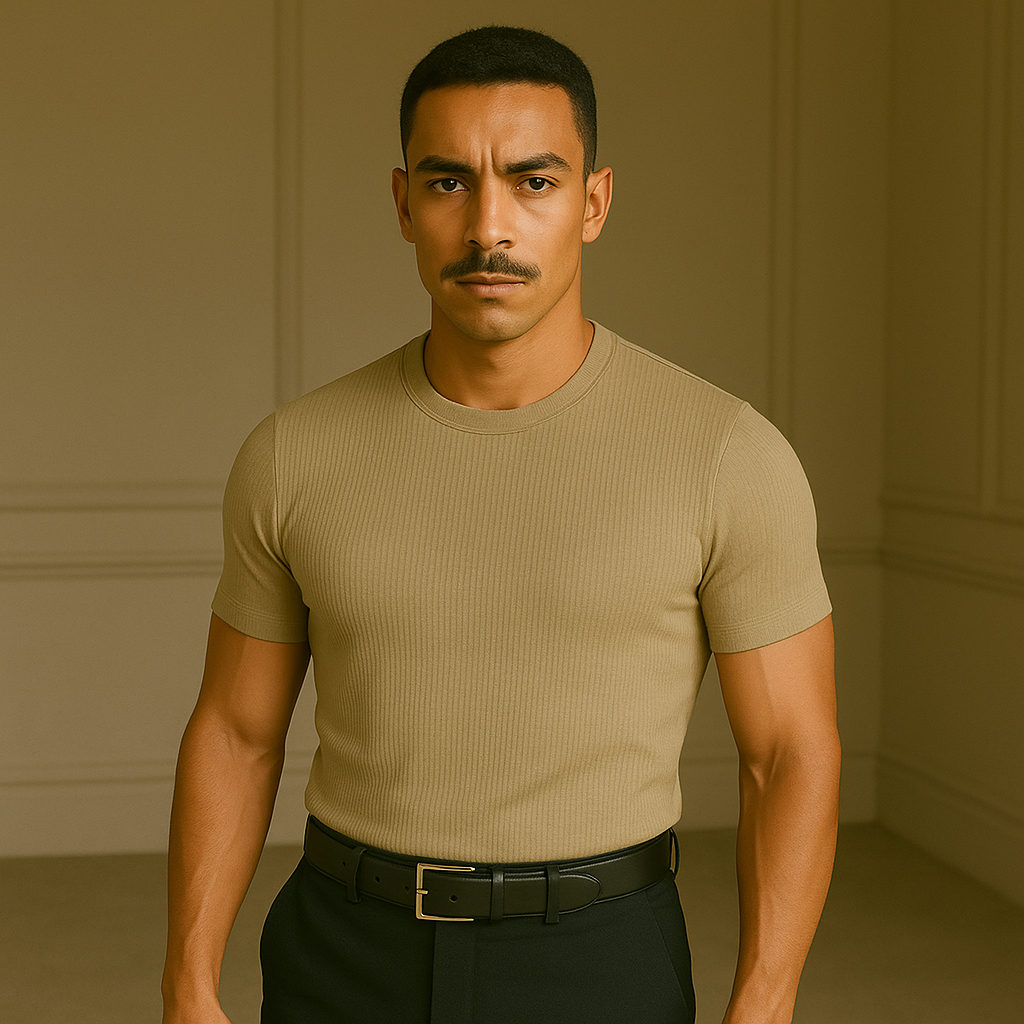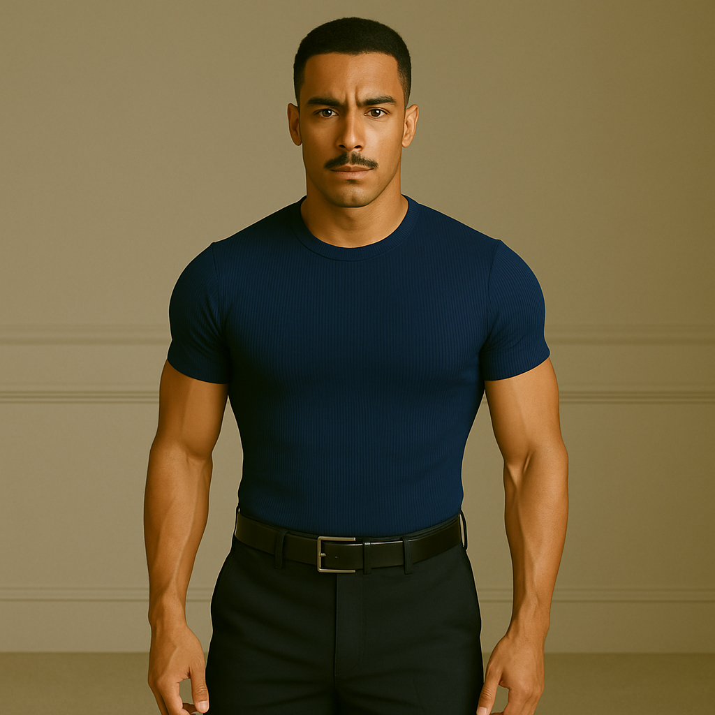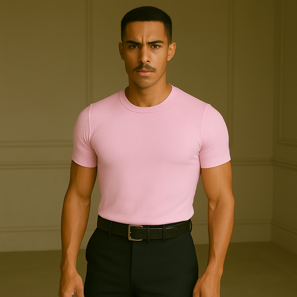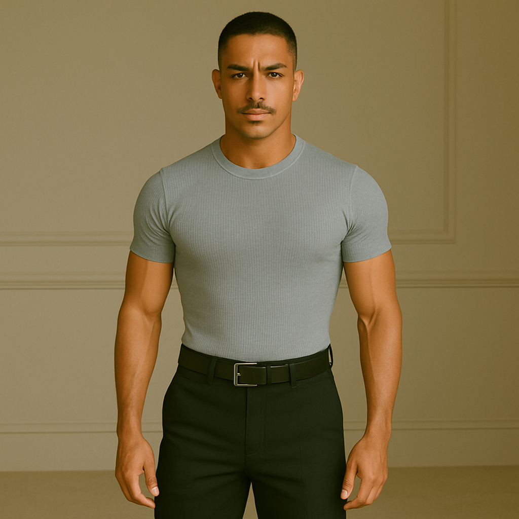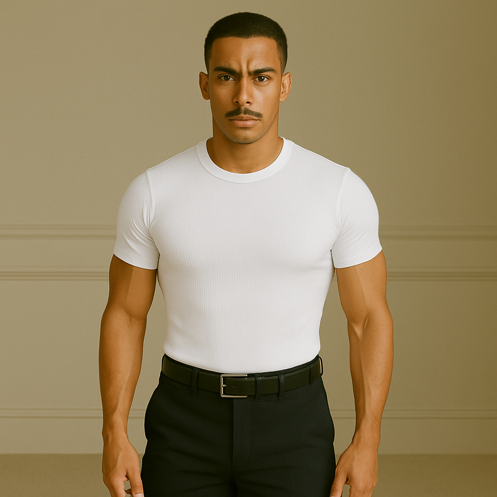 Camiseta Canelada Slim Justa ao Corpo Estilo Americano